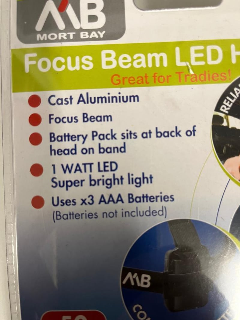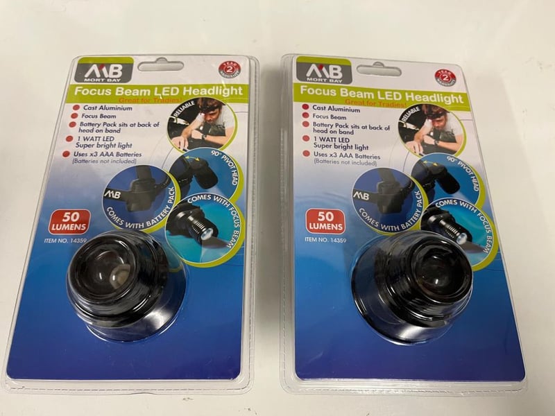 2 X Focus Beam Headlamp, Cast Aluminium Body, Focusing Headlamp Beam, Rear Battery Mount for extra comfort, uses 3 x AAA Brand New Sealed SOLD AS 1 LOT