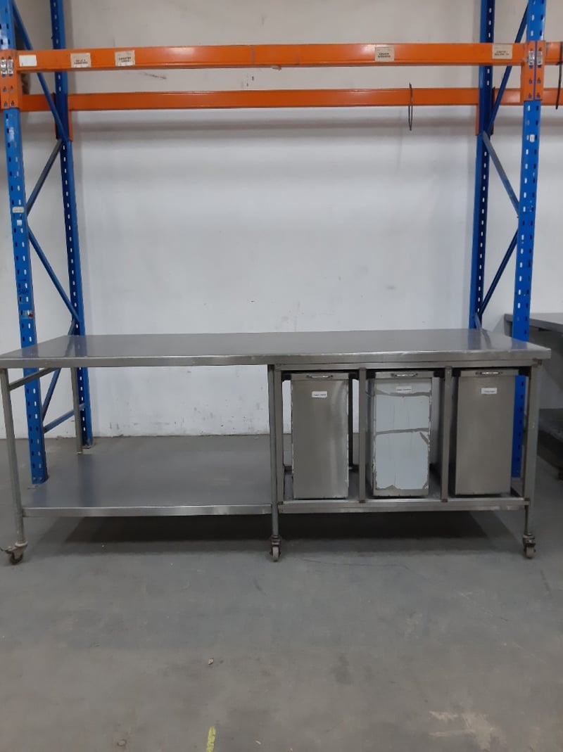 Commercial Kitchen Food Preparation Table, S/Steel On Wheels With 3 Draws