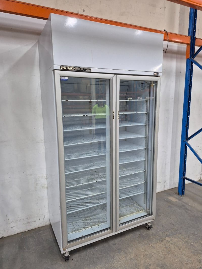 Skope 2-door commercial display fridge, 10 Tier On Wheels, White With Glass Doors