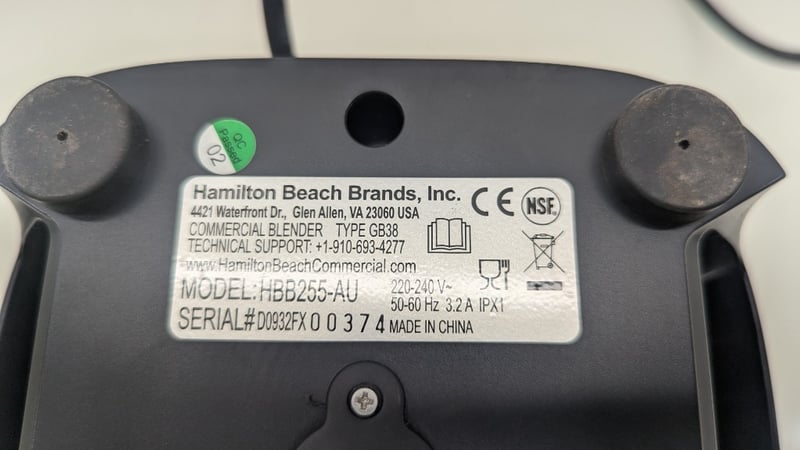 Commercial Blender, Hamilton Beach, Model: HBB255-AU, 3 Speed Settings, 1.5 Litre Jug, Dimensions 51cm(H)×17cm(W)×22cm(D)