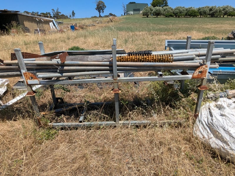 Galvanised Scaff Tube, Stillages, Internal Building Frames, Concreters Rio, Acro Prop, Concreters Plastic Chairs, Approximate Overall Dimensions: 400cm x 200 cm x 300cm _ 300kgOnsite Inspection Recommended, Refer To ImagesQty to LotSold as Lot