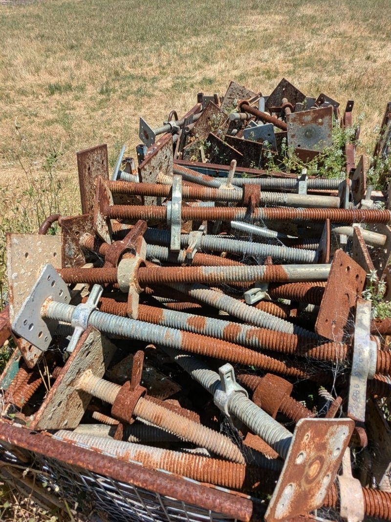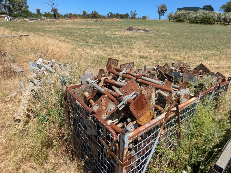 Acro Prop Parts, Steel Prop Heads Onsite Inspection Recommended, Refer To ImagesTotal Approximate Dimensions: 120cm x 250cm x 120cm _ 900kgQty to Lot : Lot Includes 2 Lifting Cages, Total: 3 Containers of ItemsSold as Lot