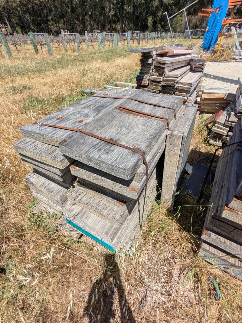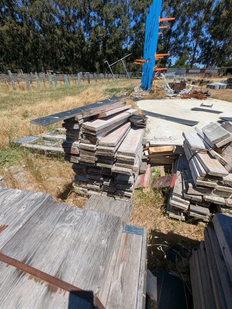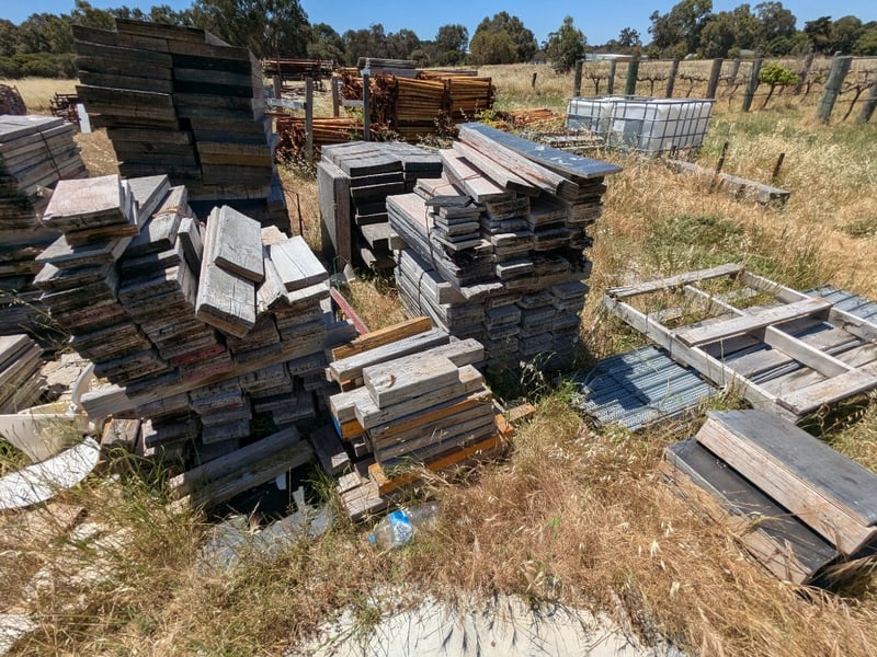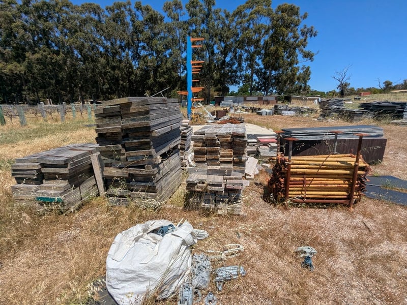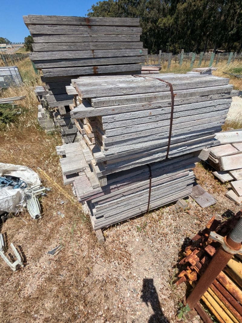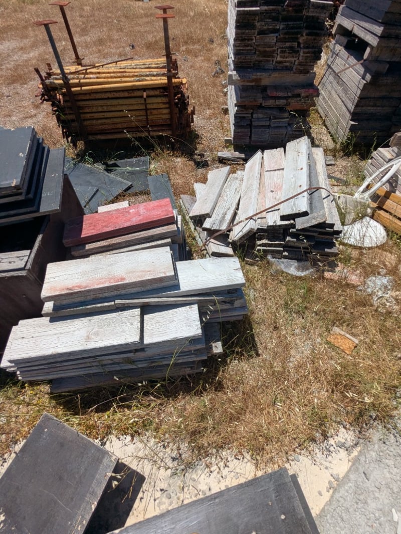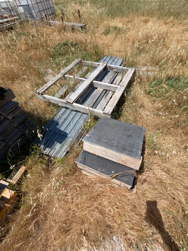 Timber Planks - Short, Steel Scaffold Side Rails, Structural Plywood, Onsite Inspection Recommended, Refer To Images Overall Approximate Dimensions: 120cm x 600cm x 300 _ 4000kgQty to Lot: 7 Pallets of Timber, 1 Stillage of Scaff Rails + Loose Timbers & PlySold as Lot
