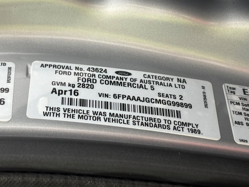 2016 Ford Falcon 1 Tonner FGX Year: 2016 Make: Ford Model: Falcon Series: 1 Tonner Badge: FGX Body: Single Cab Utility Drive Type: Rear wheel drive Odometer: Indicating 170,606 Kilometers Engine: 4.0 I6 Petrol Transmission: Automatic Colour: Silver Seats: 2 Description/extras: Air Conditioning, Power windows, SRS, Sat Nav, Digital dash, Cruise control, Climate control, AUX / USB, Towbar, Central locking, CD player, Log books/Owners manual. Multifunctional Steering Wheel, Cup Holders, Traction Control, Power Outlet 12V, Interior: - Glovebox Compartment could not be opened - Small marks and wear on upholstery, trim and handles Exterior: - Some Sunfade damage on plastic trim - Dents on Hoof as per photos - Panel and Tray Scratches, Rock Chips and Small rust spots as per photos - Dent and Surface Rusting on Front Left Fender as per photos. VIN: 6FPAAAJGCMGG99899 ENG No: JGCMGG99899 AS PER PPSR (Key #B45 Carrara) Lloyds stock #583636+1 #PCV