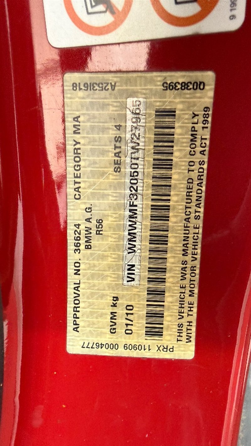 2010 Mini Cooper R56 S ChilliYear: 2010Make: MiniModel: CooperSeries: R56Badge: S Chilli Body: 3-Door HatchDrive Type: Front wheel driveOdometer: Indicating 206,799 KilometersEngine: 1.6 I4 PetrolTransmission: AutomaticColour: RedSeats: 4Description/extras: Air Conditioning, Power windows, Cruise control, Leather interior, Central locking. Engine light on and other warnings. Price Guide - $6,050-$8,300 (Based on Unmodified Vehicle) VIN: WMWMF32050TW27965ENG No: A2531618 AS PER PPSR(Key #C3x2 carrara)Lloyds stock #583622+1#PCV