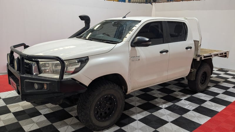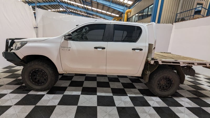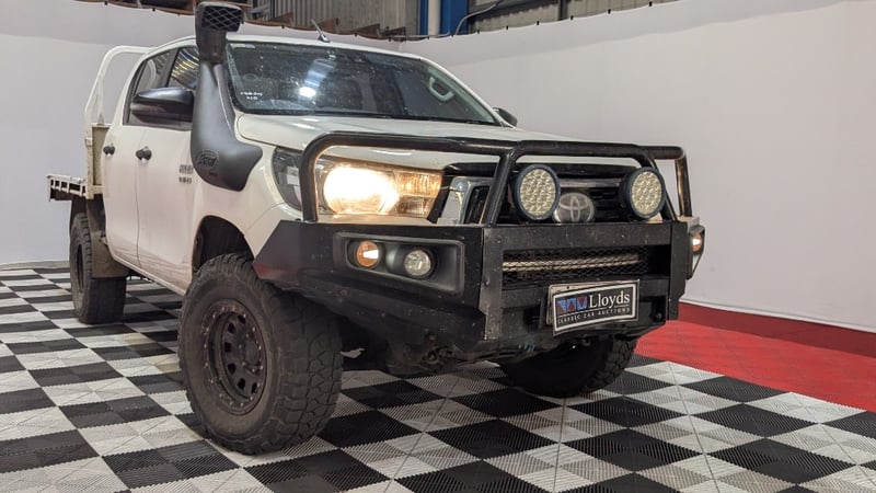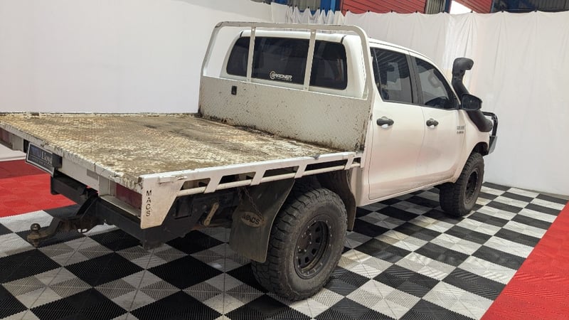 Description/extras: Air Conditioning, Power windows, SRS, Tinted windows, Cruise control, Towbar, Bullbar, Reverse camera, Central locking. Black Duck Seat Covers Front and Rear, Cup Holders, Multifunctional Steering Wheel, Down Hill Descent Assist, Rear Diff Locker, Touch Screen Display Head Unit, Snorkel. Cleaning Required.