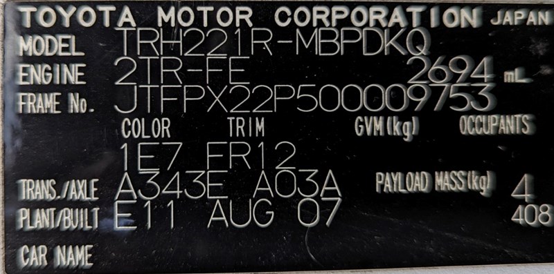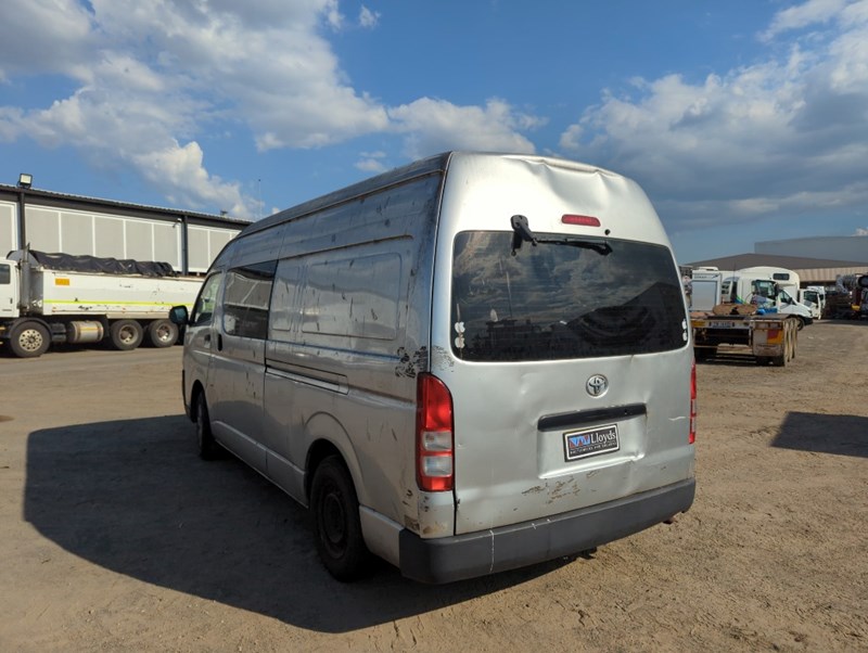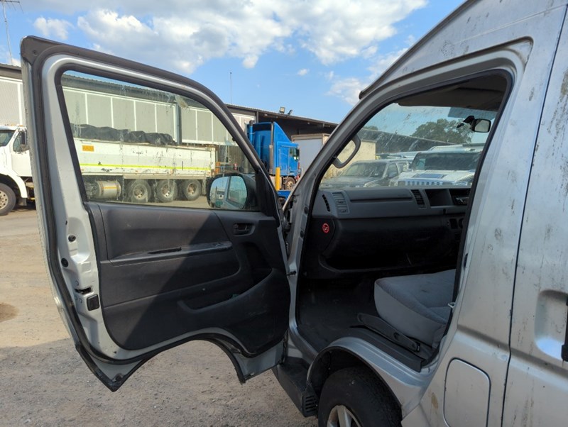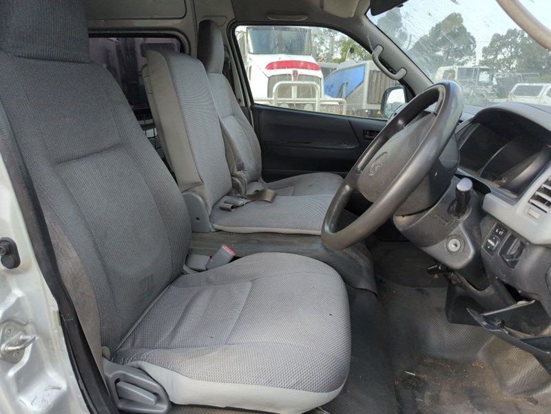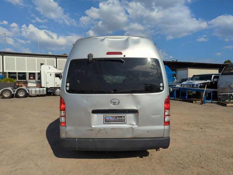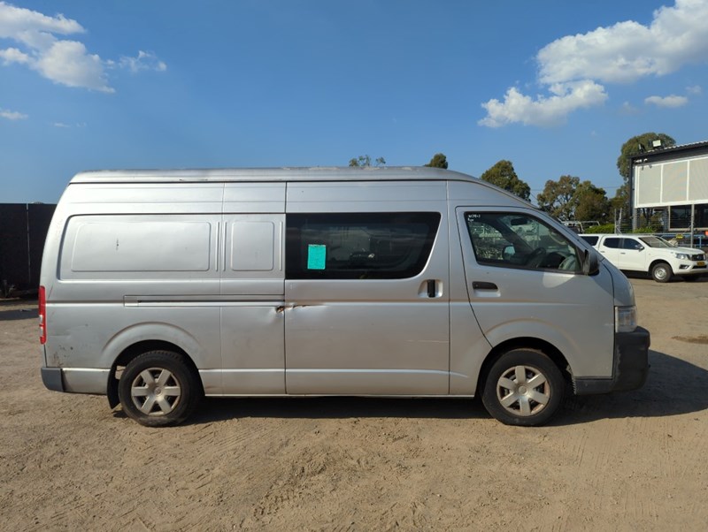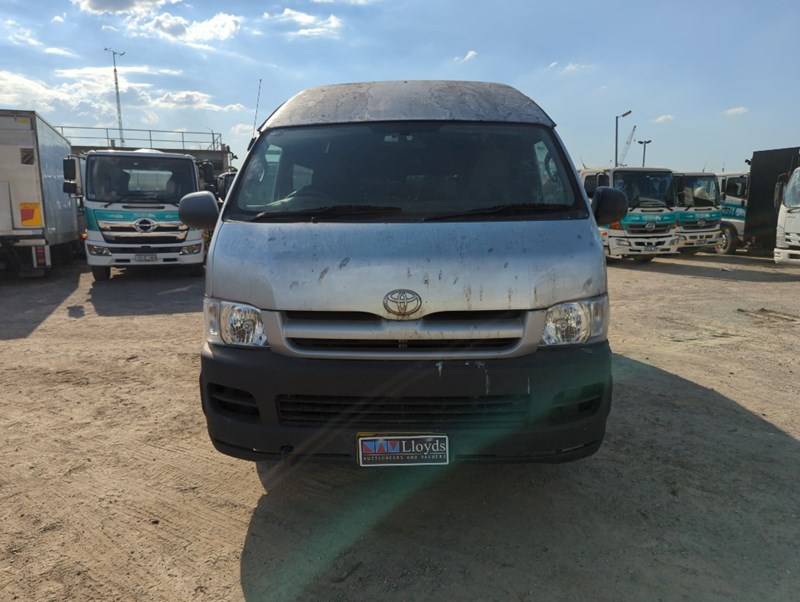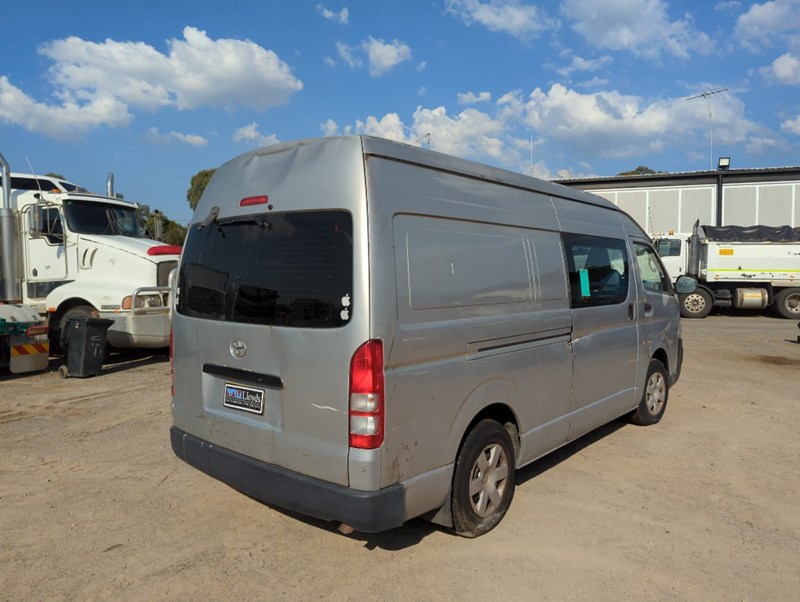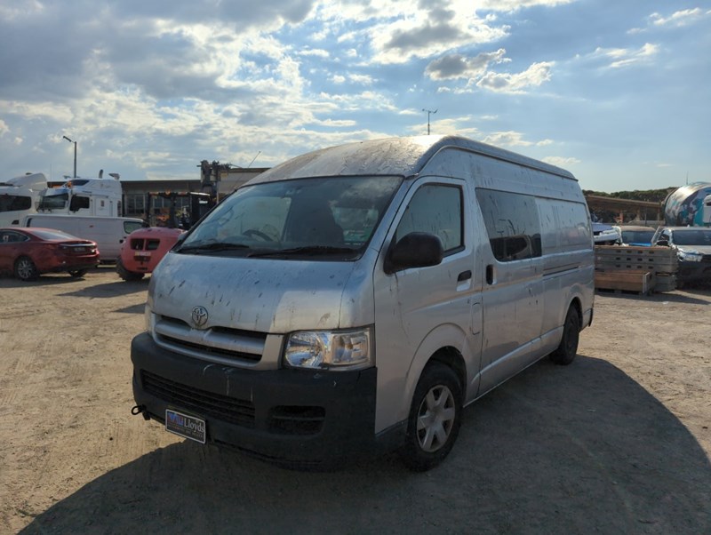 2007 Toyota Hiace TRH221R SLWB Year: 2007 Make: Toyota Model: Hiace Series: TRH221R Badge: SLWB Body: 4-Door Van Drive Type: Rear wheel drive Odometer: Indicating 253,497 Kilometers Engine: 2.7 Petrol Transmission: Automatic Colour: Silver Seats: 3 Description/extras: Damages, Refer to photos, Note: Inspection highly recommended Keys x1, Overall condition rough, flat battery. Notes: Possible ceased engine or starter motor. Electrical issues possible. VIN: JTFPX22P500009753 ENG No: 2TR0511298 (As per PPSR) (Key #No Key Marple) Lloyds stock #161288+1