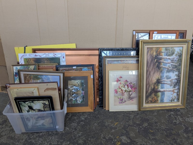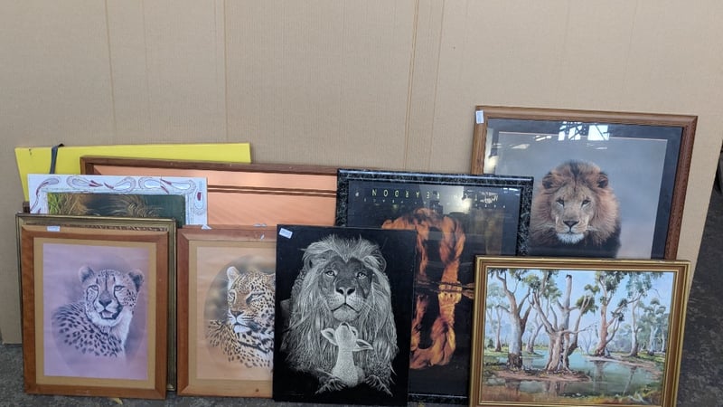 Artworks, over 30 pieces including framed paintings, prints, copper art and more