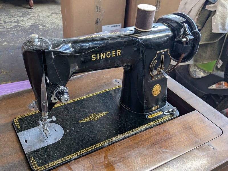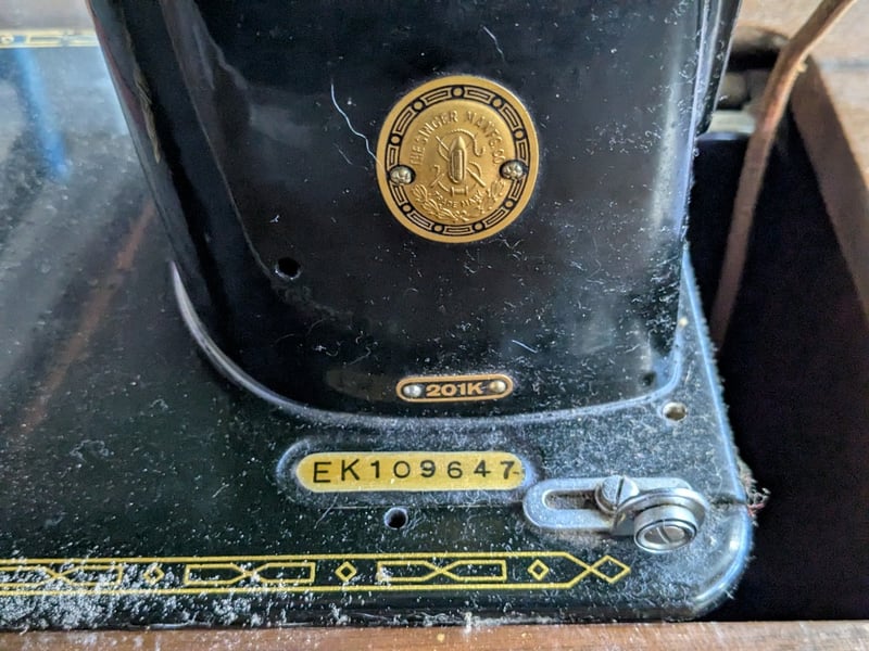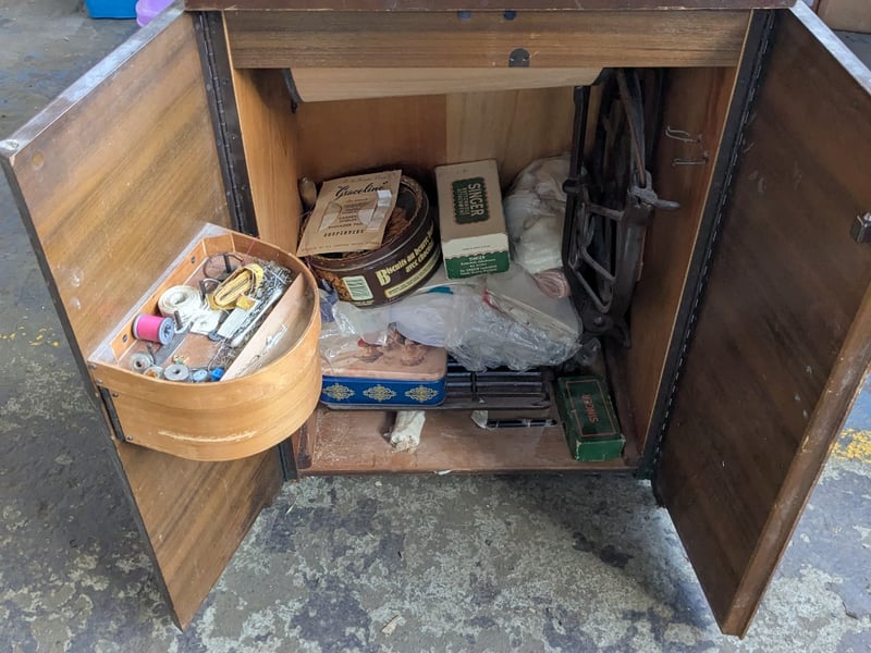 Sewing machine, Singer EK109647 in cabinet with accessories Dimensions 78cm H x 55cm W x 43cm D