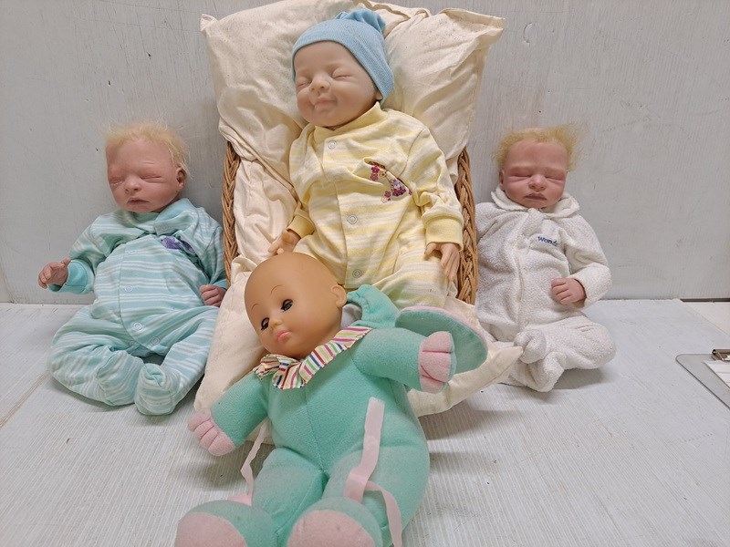 Dolls, 4 x dolls includes baby in basket, newborn and more