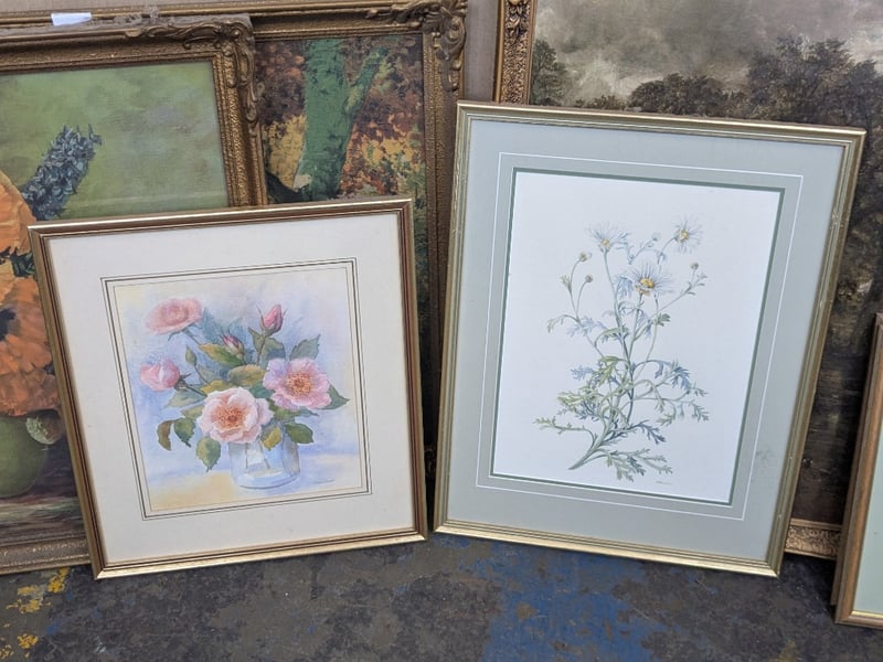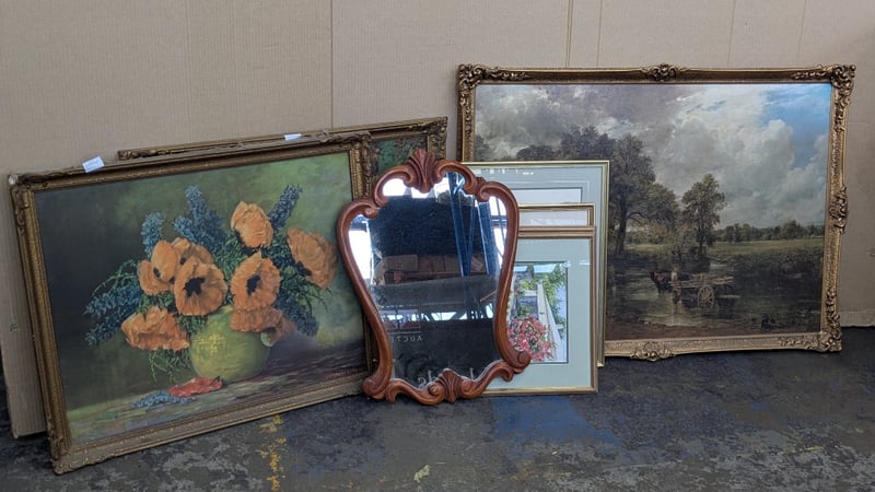 Artwork, 8 pieces including timber framed mirror, framed prints and more