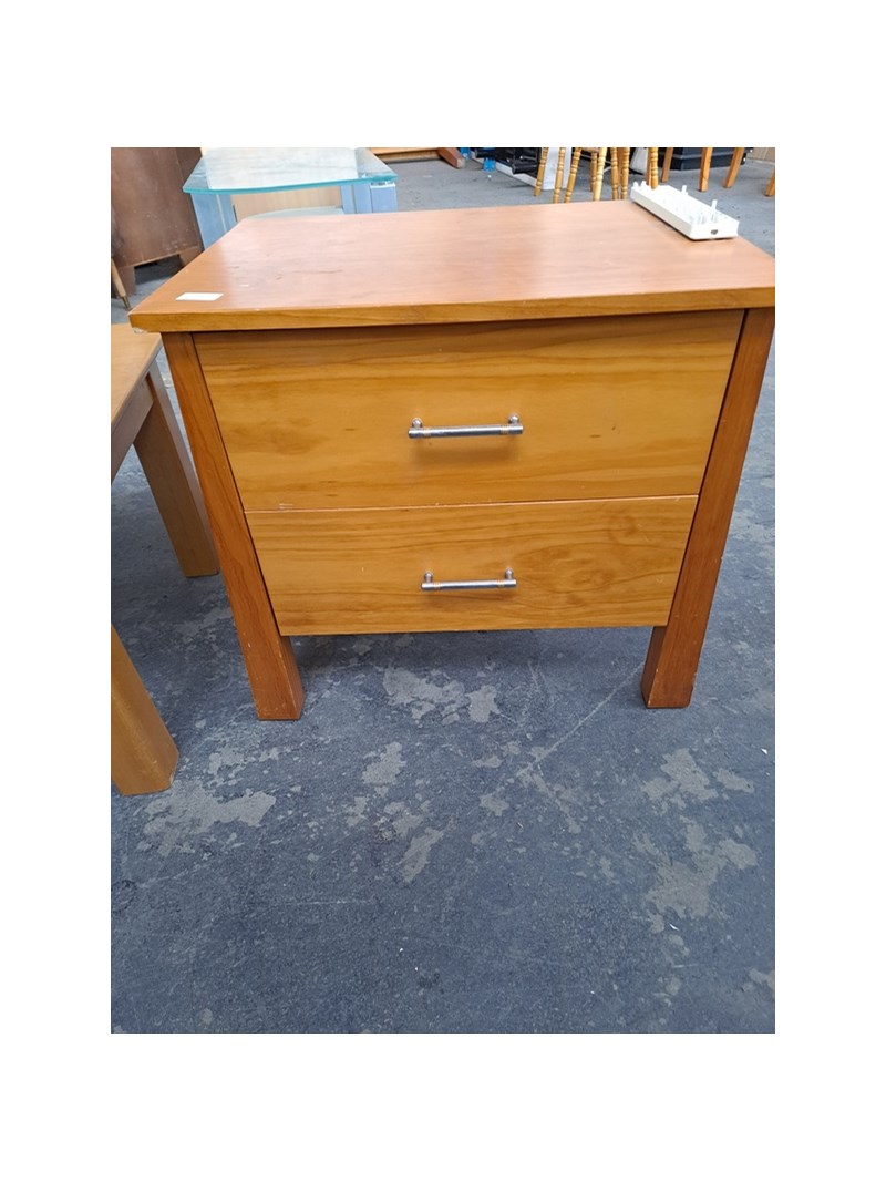 Furniture, includes 2 x timber bar stools and 1 x timber bedside cabinet