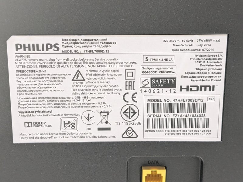 Television, Philips 47inch TV with remote model no. 47HFL7009D