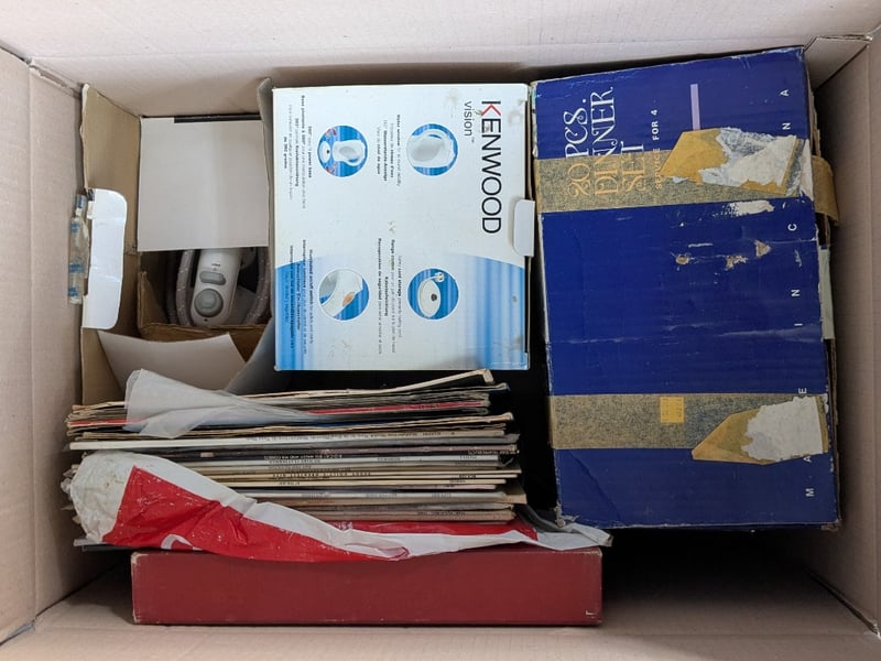 Homewares, including Elka acoustic guitar, vinyl records, kitchenware and more Sold as lot