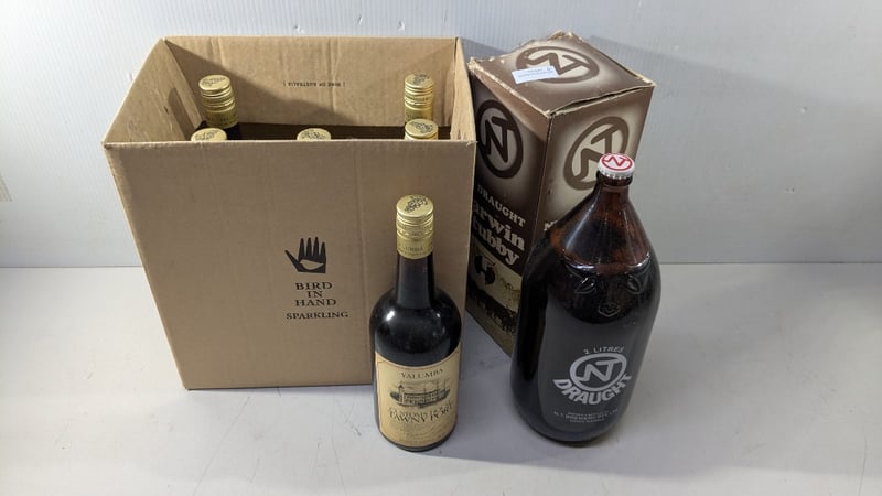 Alcohol, includes 6 x bottles 750ml Customs House Tawny Port and 1 x 2L NT Draught Darwin stubby