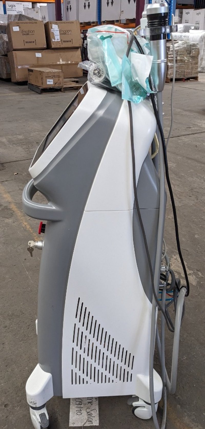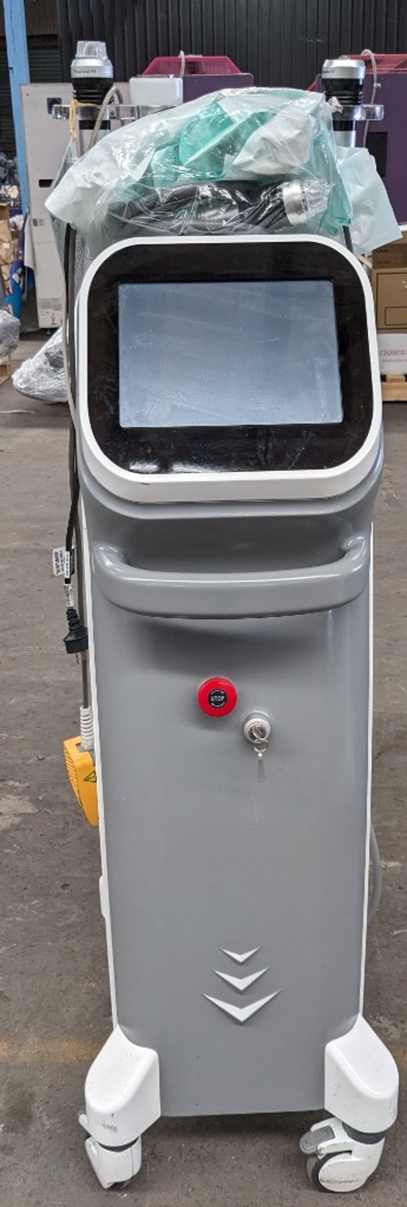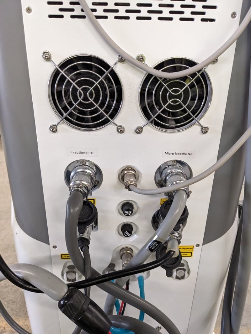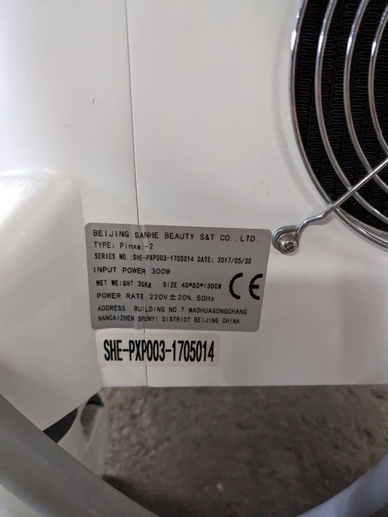 Microneedling Unit - Sanhe Pinxel-2, 10.4" LCD touchscreen controls, Kacon foot pedal, mobile, DOM: 05/17, S/N: SHE-PXP003-1705014 with 5x handpieces - 2x micro needle RF, fractional RF, negative and cooling