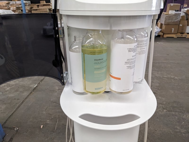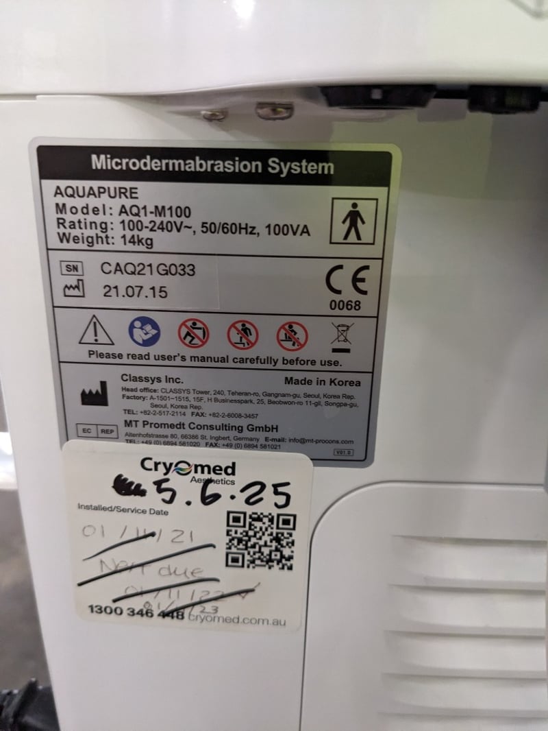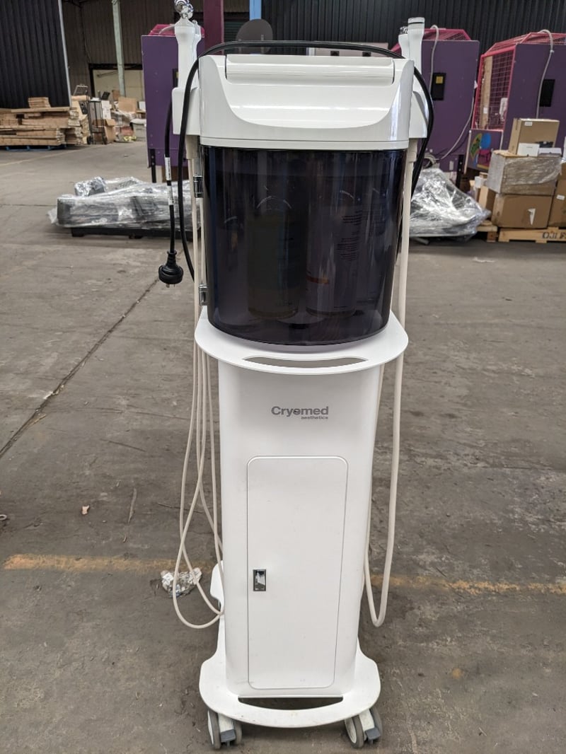 Hydro-facial Treatment Device - Cryomed Aquapure AQ1-M100, 7" LCD touchscreen controls, mobile, DOM: 07/21, S/N: CAQ21G033 with 4x handpieces - micro-current, cooling/heating, electroporation and aquapeel