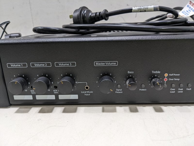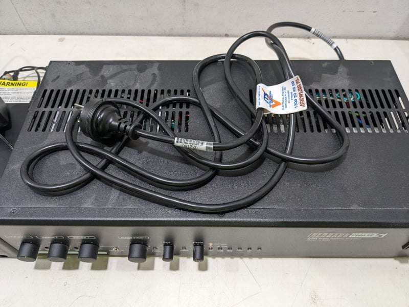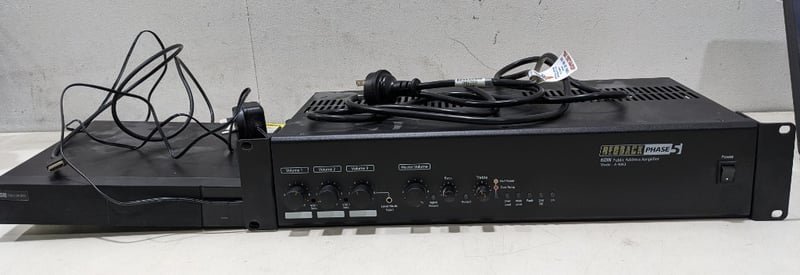Assorted electronics includes: Comprising Unbranded DVR-HP2104TS digital video recorder, 2Tb, S/N: DVRHP2104TS1906080001 and Redback Phase 5 model A4043 60W public address amplifier