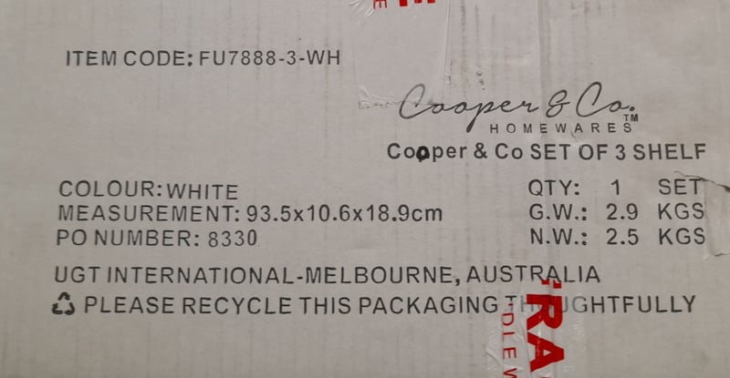 Cooper and Co SET OF 3 SHELF, color white, item code: FU7888-3-WH.Sold as a lot.