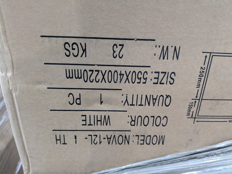 RRP: $4900, Ceramic Basin, NOVA-12L-ITH, Qty: 20 to pallet, sold as pallet lot,