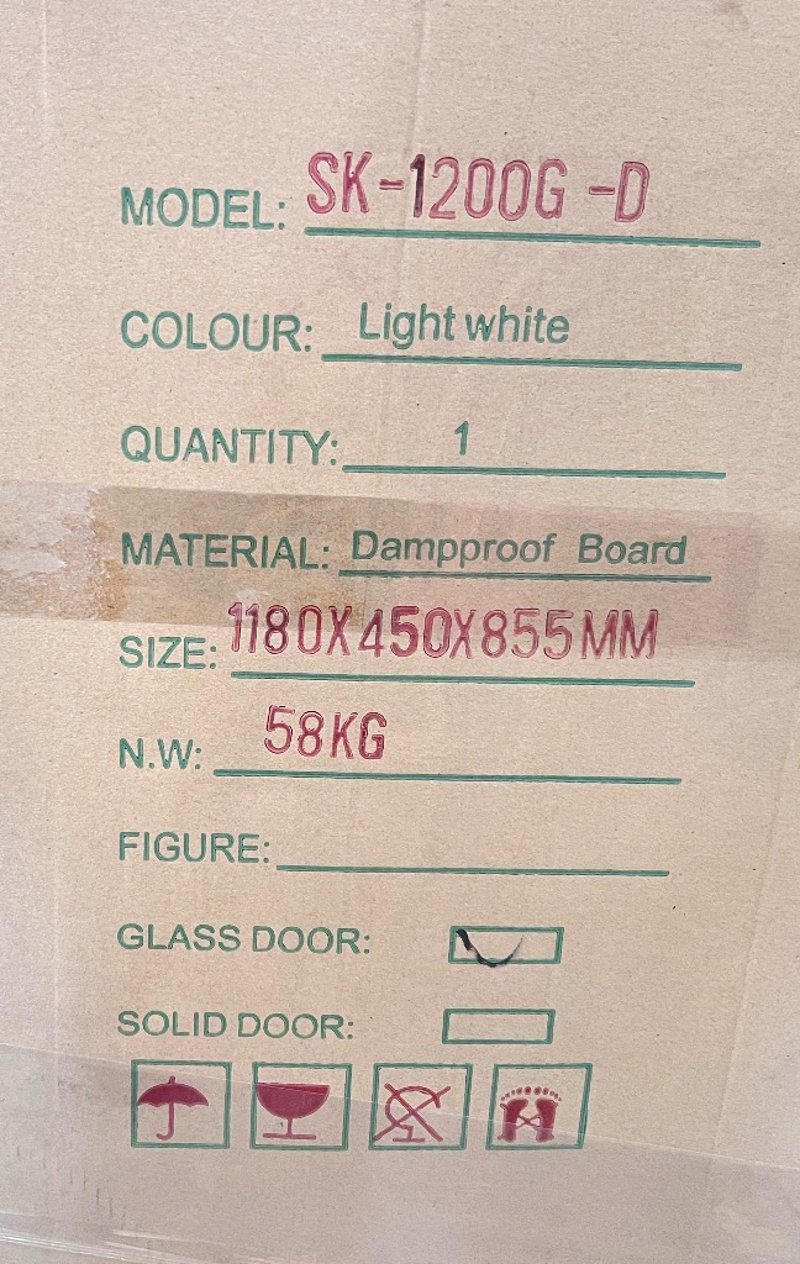 Bathroom Vanity, SK-1200G-D, White, Glass Doors, Qty: 2 to pallet, sold as pallet lot,