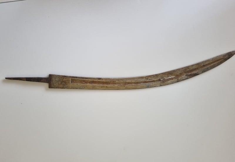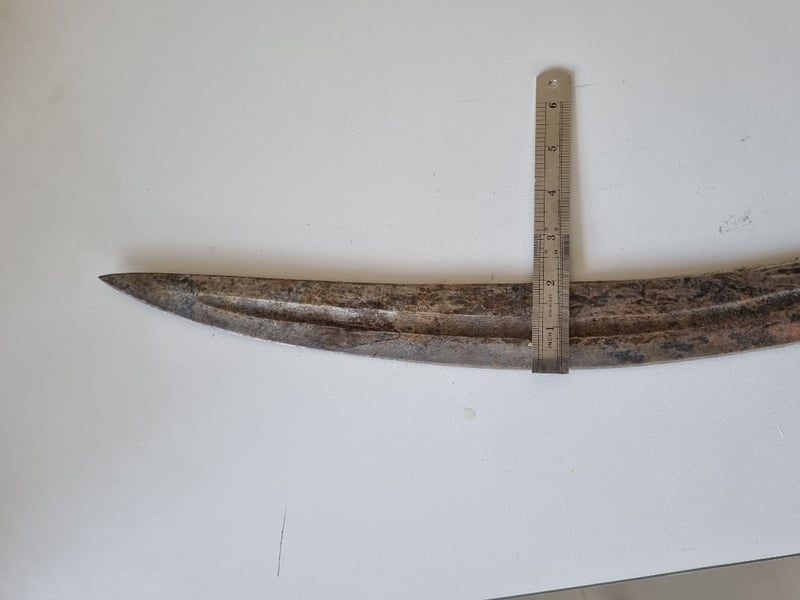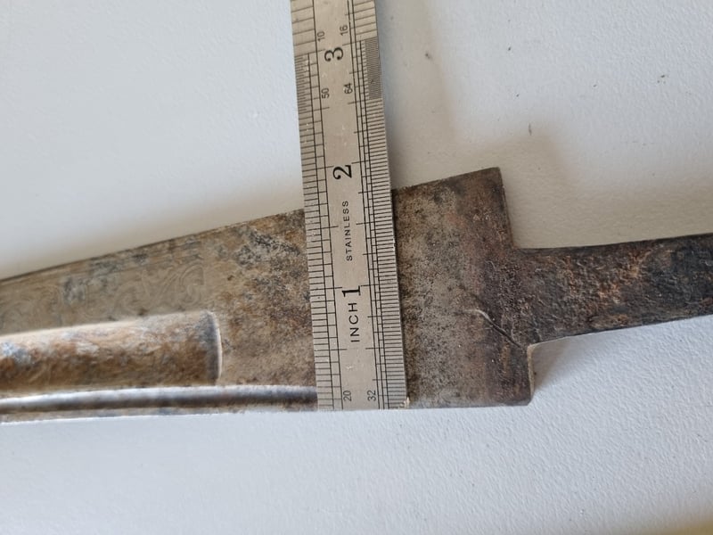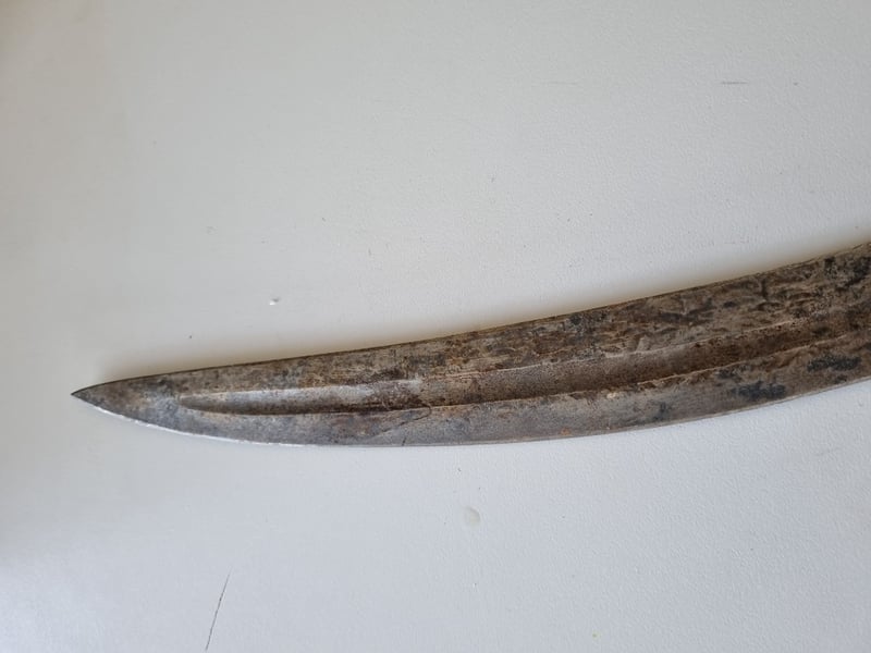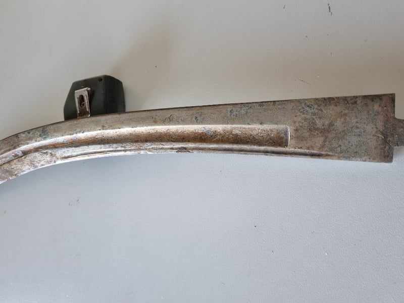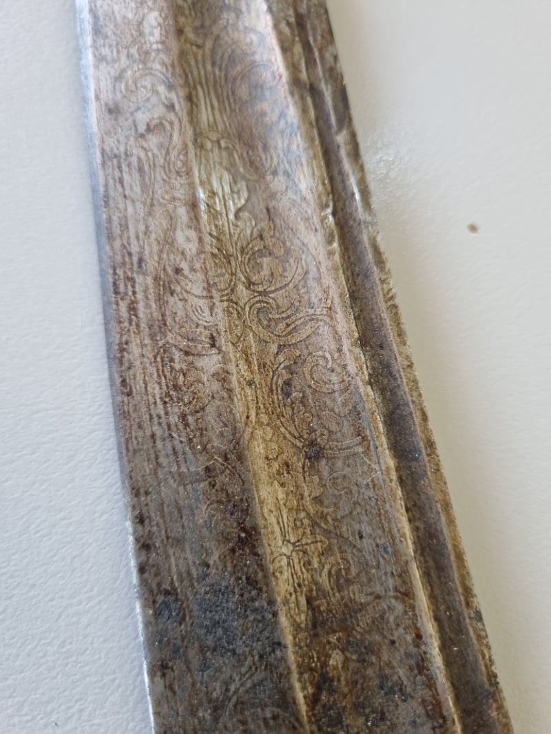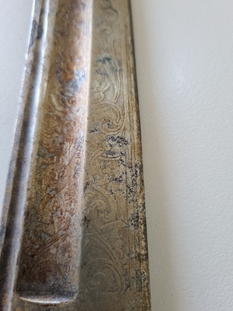 HEAVY SABRE BLADE UNKNOWN MAKER, POSSIBLY OTTOMAN, ENGRAVED AND DECORATED BLADE, YELLOWISH FROM A PROTECTIVE COATING