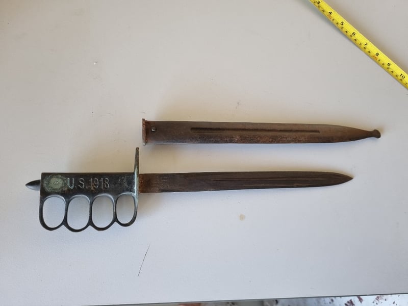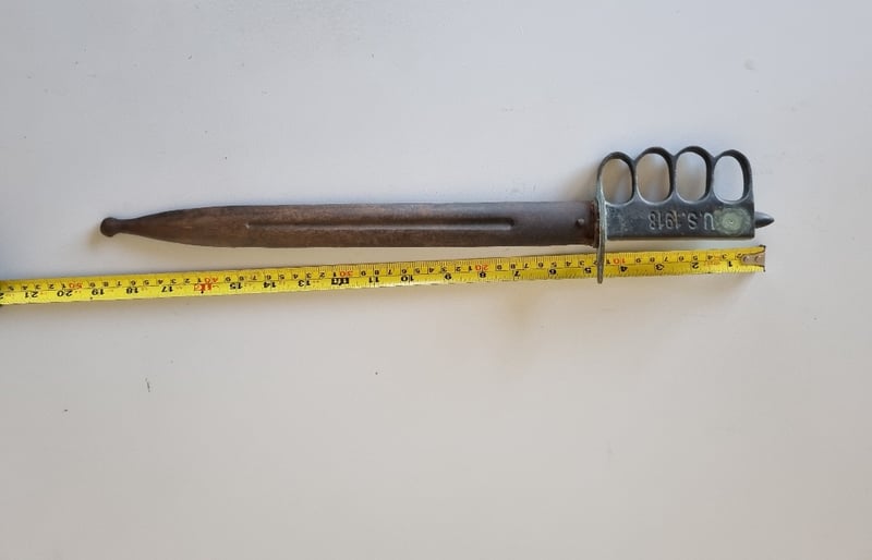 1918 U.S SPECIAL FORCES, TENCH FIGHTING KNIFE, BASS GRIP. REPLICA.Item Size: Height: 48cm, Width: 10cm, Depth: 2cm, Weight: 1KgCondition: Fair - Refer To ImagesTOORMINA548585+6