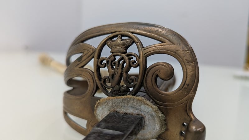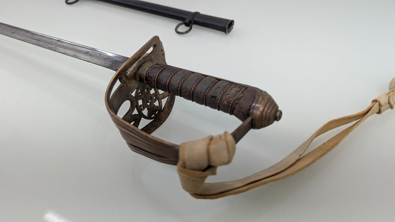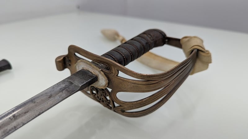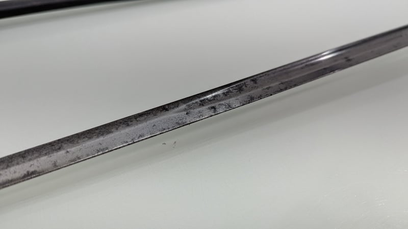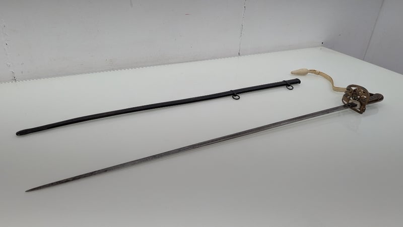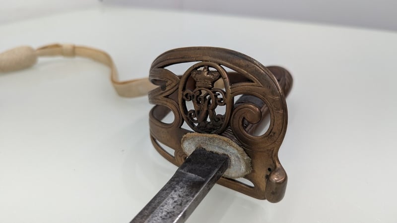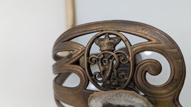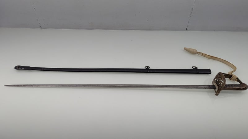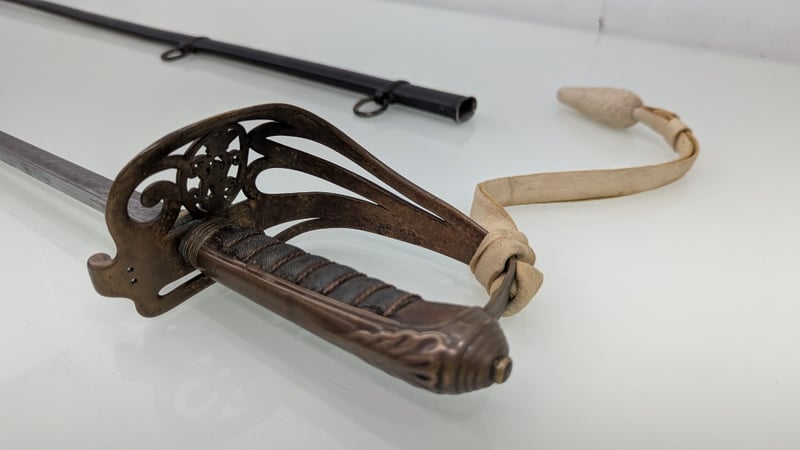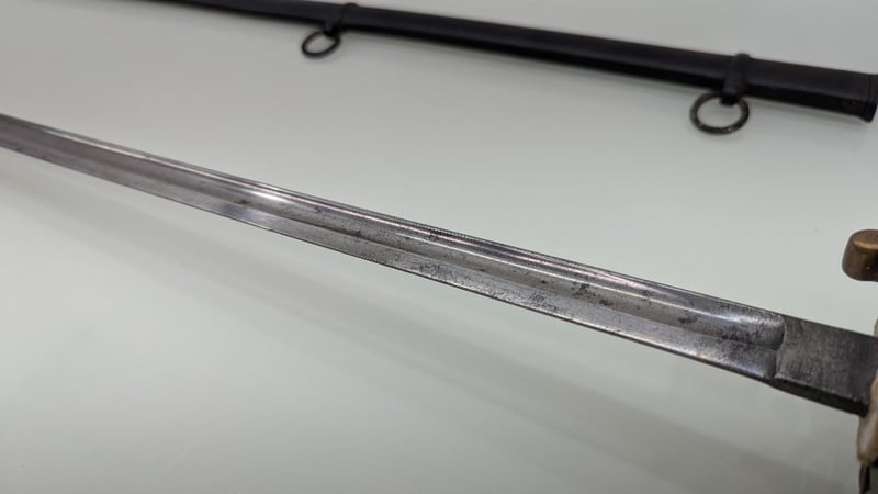 VICTORIAN ERA M1845 MARINE OFFICERS REGIMENTAL DRESS SWORD, SHEGREEN AND BASS HILT 83CM BLADE, NUMBERED 27030, BUFF WHITE SWORD KNOT
