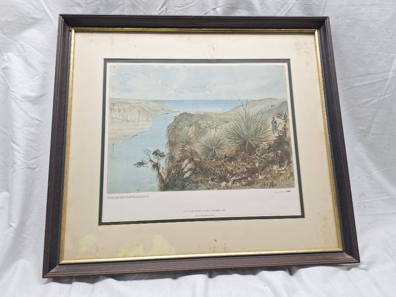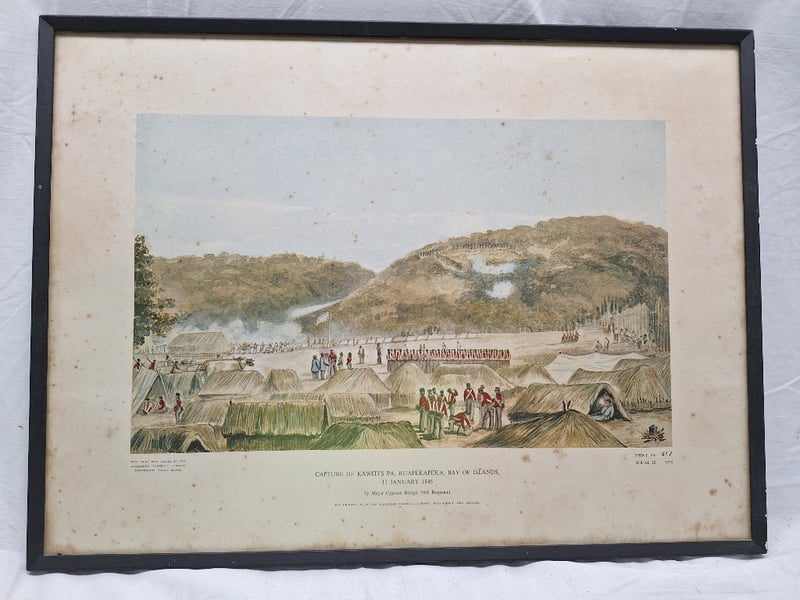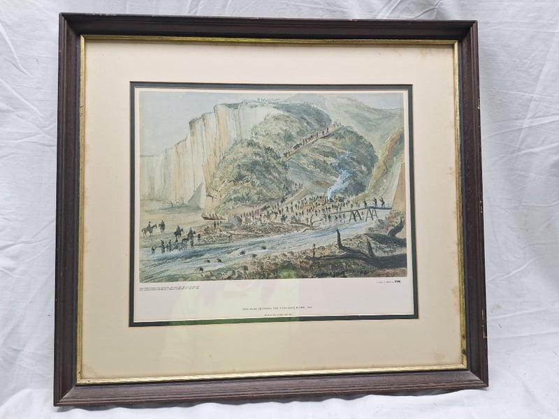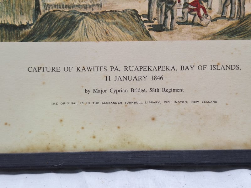 Capture Of Katie'S Pa, Ruapekapeka, Bay Of Islands, 11 January 1846, By Major Cyprain Bridge, 58Th Regiment. Limited Production Print Of The Original New Zealand Wars Painting. Some Foxing 54.5 X 40Cm. Outlying Picket Patent, 30 March 1865, By E A Williams. Limited Production Print Of The Original New Zealand Wars Painting. Some Foxing, 54 X 47.5Cm, Soldiers Crossing The Tangahoe River, 1865 By E A Williams, Minor Foxing, 54.5 X 40Cm