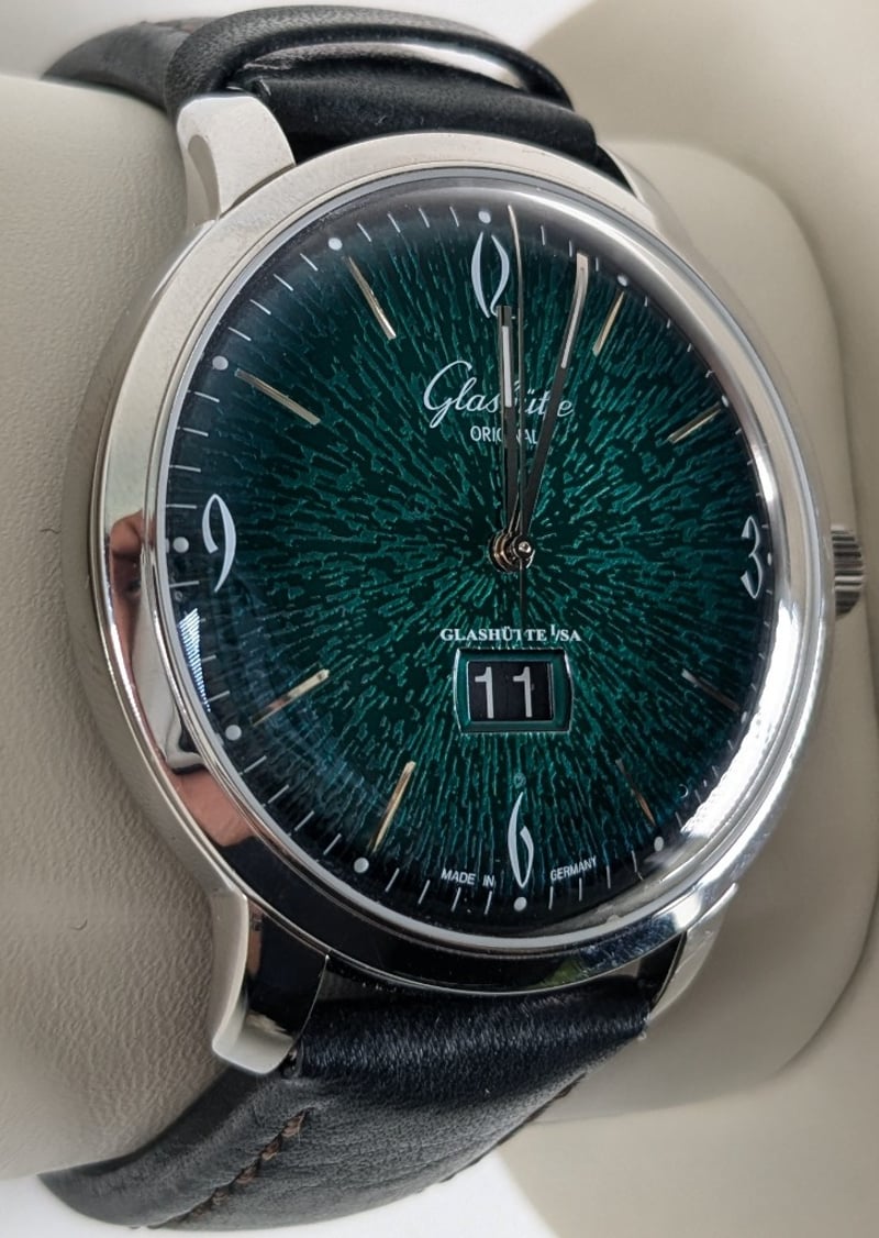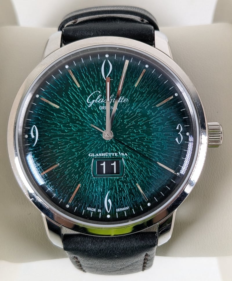 GLASHÜTTE ORIGINAL SIXTIES ANNUAL EDITION 1-39-52-03-02-04 Price Guide - $9000 - $10000 REFERENCE NO. 1-39-52-03-02-04DIAL: GREENCASE DESCRIPTION: STAINLESS STEELCASE SIZE: 39MMBRACELET: CALFSKIN LEATHER STRAP IN BLACK WITH A STEEL PIN BUCKLEMOVEMENT: CALIBRE 39-52BOX: INCLUDEDPAPERS: INCLUDEDCondition: Good - Refer To ImagesFC162974+21