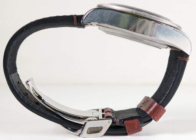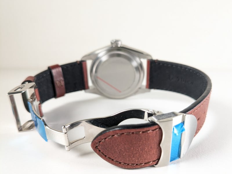 BRACELET: BROWN LEATHER STRAP WITH FOLDING CLASP AND SAFETY CATCH