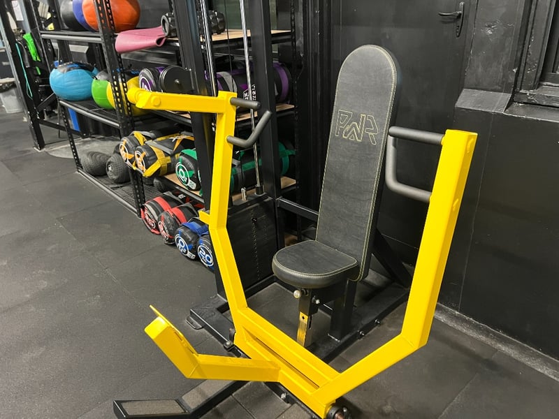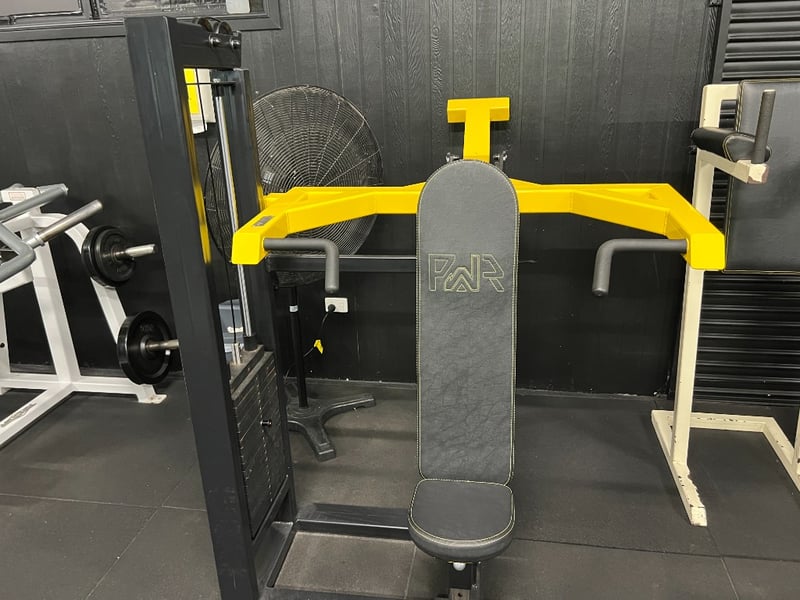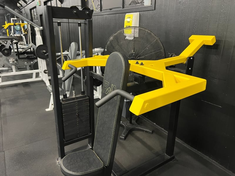 Commercial-grade upper-body strength machine designed to target the pectoralis major while also engaging the deltoids and triceps.