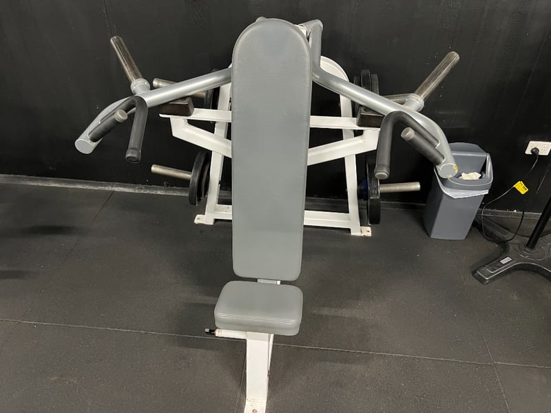 Commercial-grade upper-body strength machine designed to target the deltoids (shoulders) with secondary engagement of the triceps and upper chest