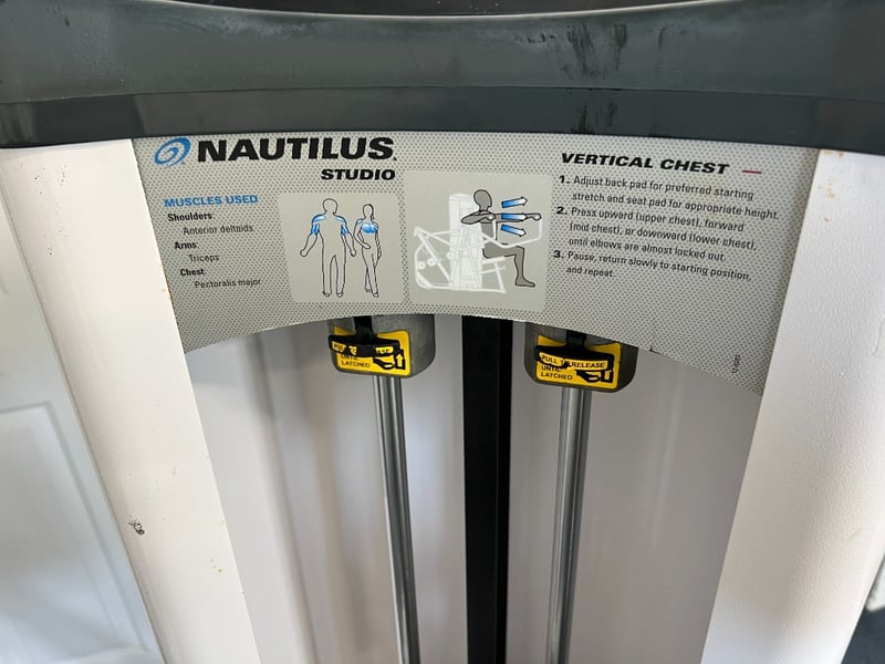 Nautilus Vertical Chest PressCommercial-grade chest isolation machine designed for safe and effective development of the pectoral musclesDimensions (approx.):Length: 1,200–1,400 mmWidth: 800–1,000 mmHeight: 1,400–1,600 mmMachine Weight: ~180–220 kgSold as isLocation: #MACKAY CBDContact Kyle Haywood | Ph 0487 020 888 | [email protected]