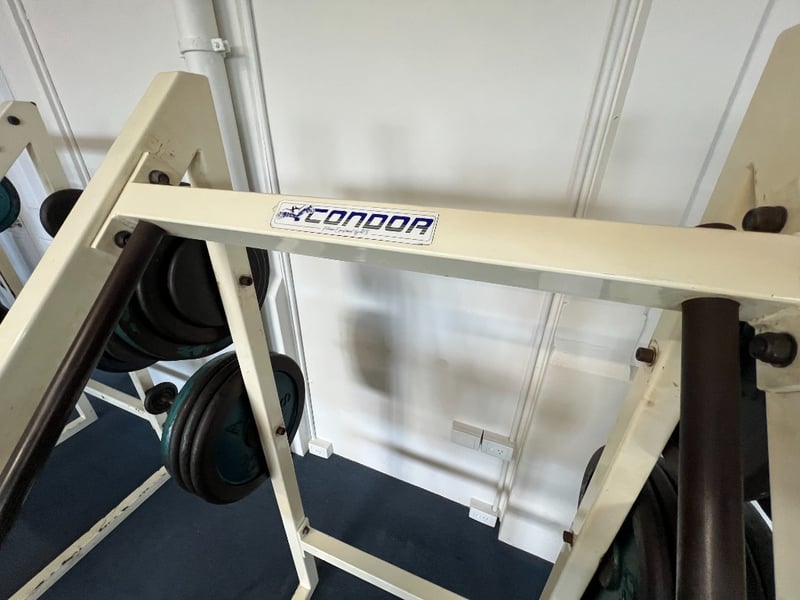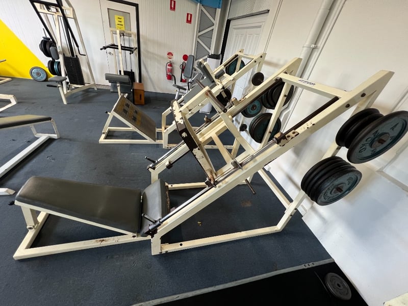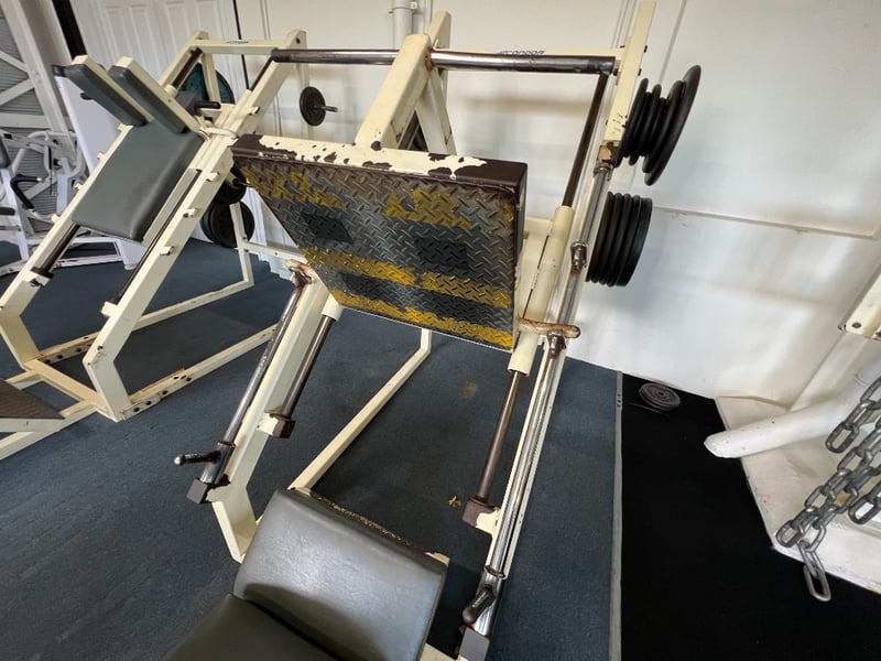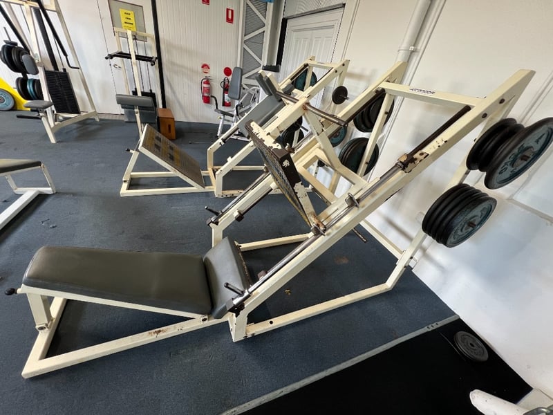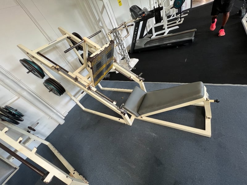 Commercial-grade lower-body strength machine designed to target the quadriceps, glutes, hamstrings, and calves in a controlled and safe manner