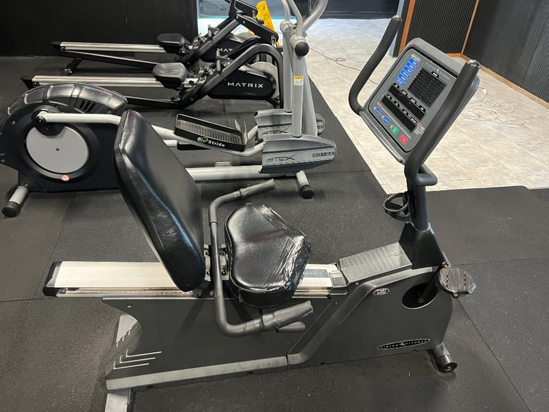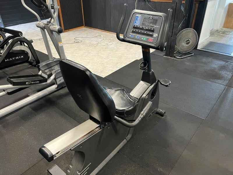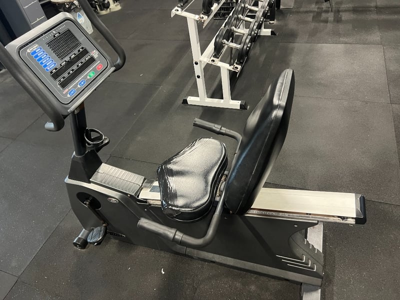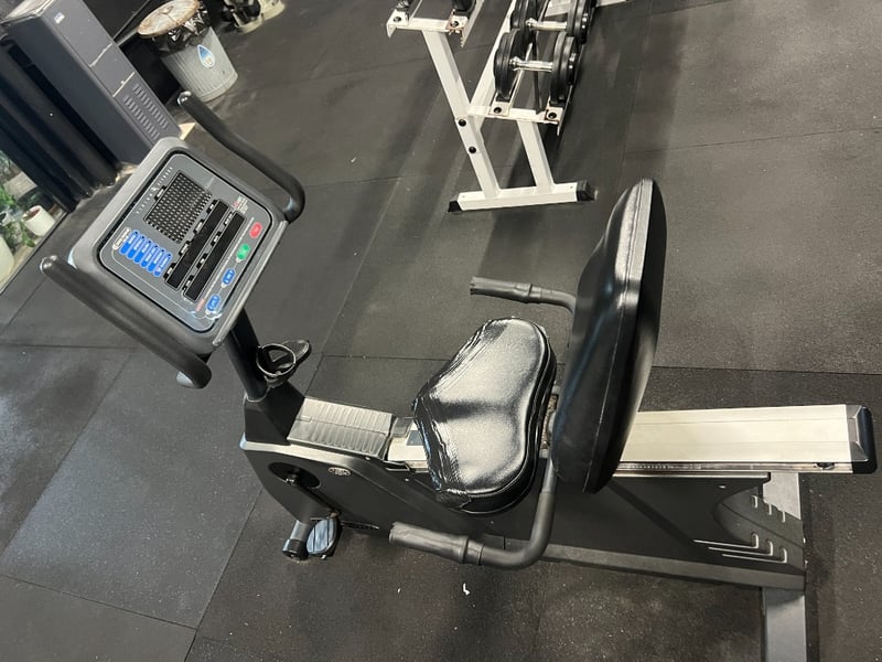 Commercial-grade recumbent exercise bike designed for cardiovascular training, rehabilitation, and low-impact fitness programs.