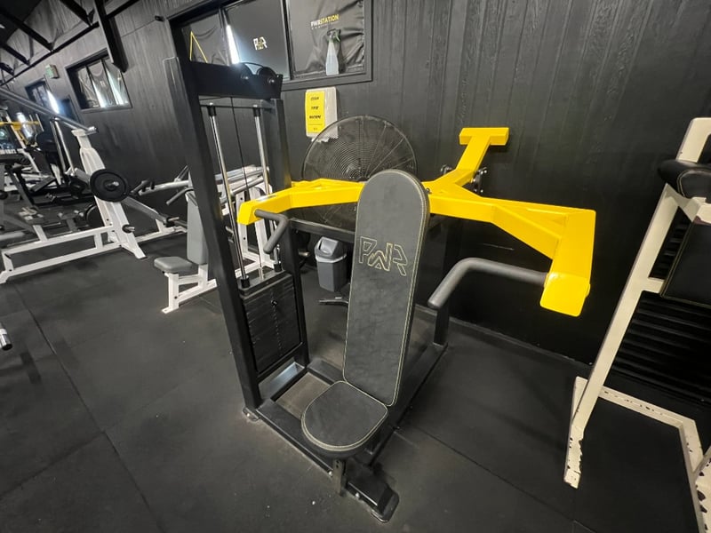 Commercial-grade upper-body strength machine designed to target the deltoids (shoulders)