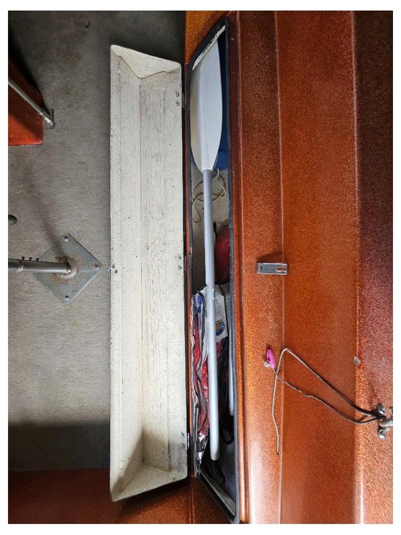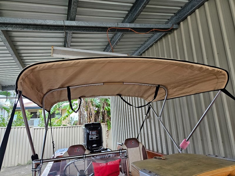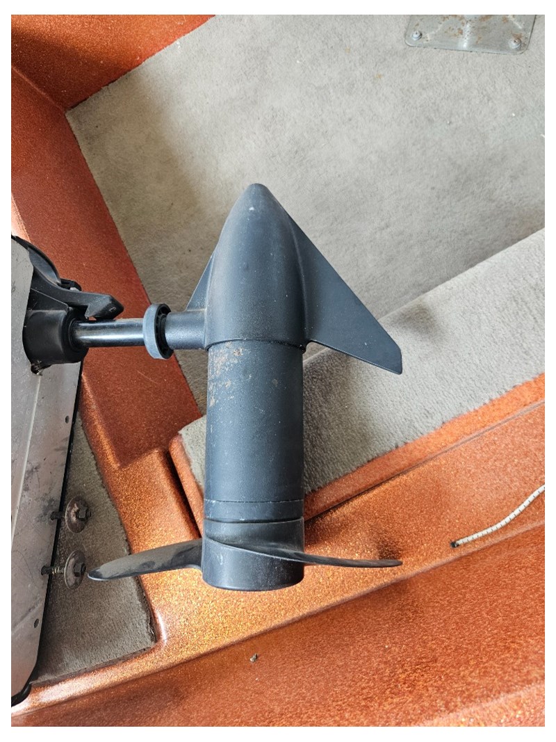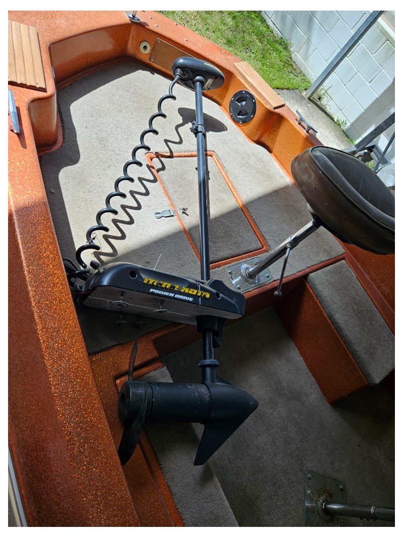 Description: Bimini with cover, refurbished engine, 3 seats, MinKota electric motor (MKAC2), anchor, rope, hummingbird 587d HD, key start, hydraulic steering, oar