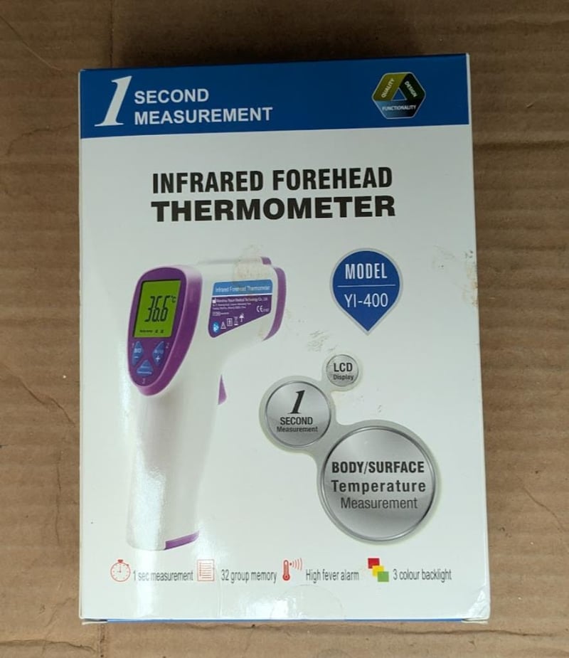 Infrared forehead gun thermometer instant measurement model YI-400 to box