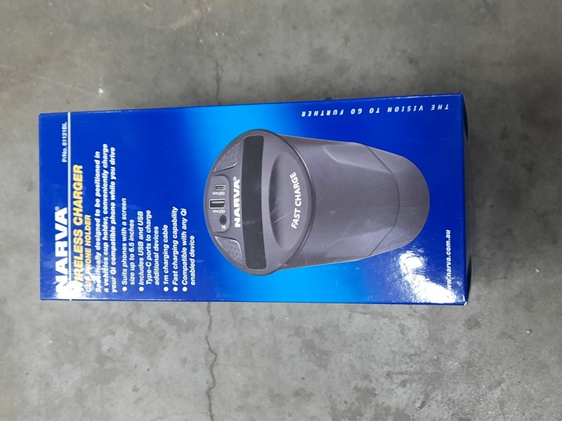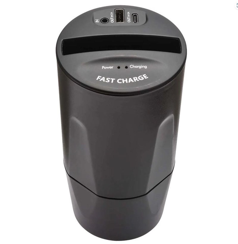 **UNRESERVED** Wireless Phone Charging Cup (Blister pack of 1), Model Number: 81121BL Mounts in the car’s cup holder to hold and charge Qi compatible phones while you drive. Phone slot designed to fit phones up to 6.5” in screen size. Includes USB and USB Type-C slot to charge other devices. Fast charging capability. Includes 1m USB cable BID PER EACH MUST TAKE 5