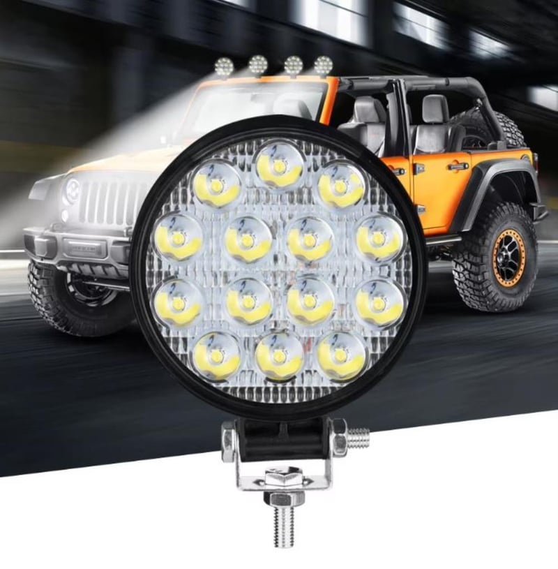 BUNDLE OF 2 Bright 4 Inch 14 LED’S Round LED Work Light 9-80V Light Interior Exterior Spotlight with DRL 4x4 Tractor 42w Headlight Spotlight for Truck ATV 4 approx. 114mm Round Modes Mode IP67 water/dust proof All approx. 30000 Life Hours All Attachment Accessories Included (BRAND NEW IN BOX)