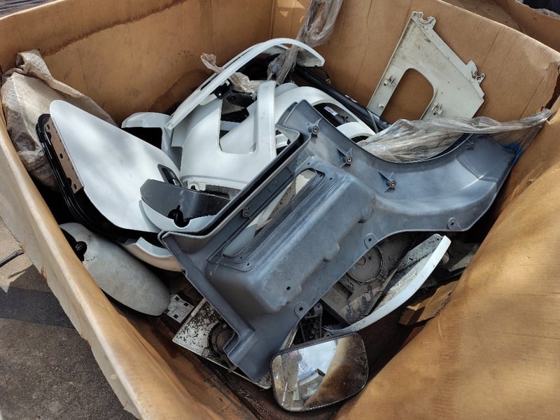 Pallet lot of DAF Truck Partmirrors & assembly, side step, side tool box doors and various fenders and bumpers Sold as Lot