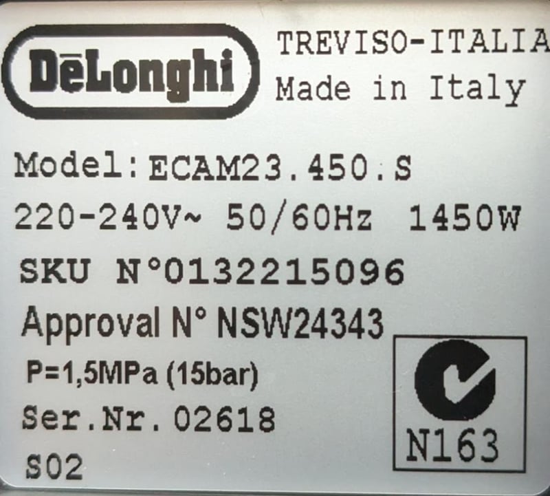 Delonghi Automatic coffee machine model ECAM23.450.S - 1450 watts (Mug not included)