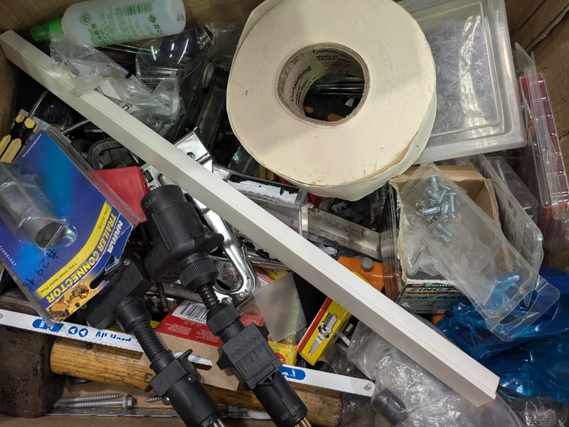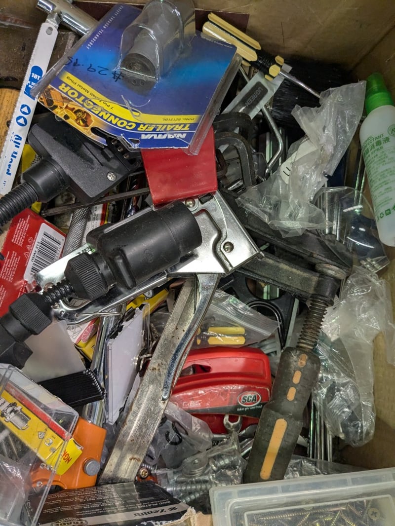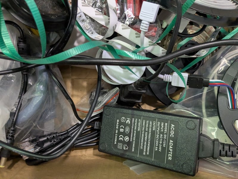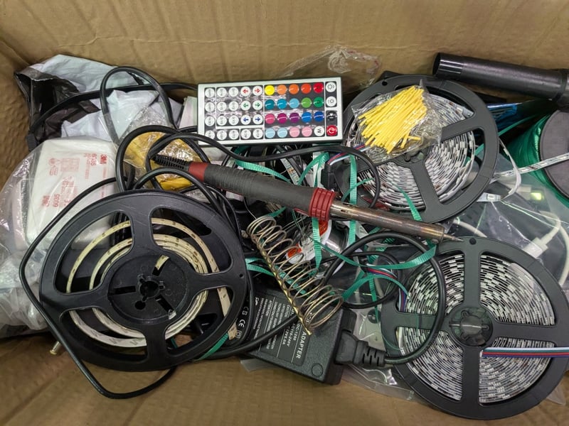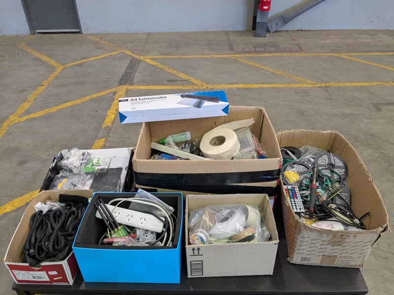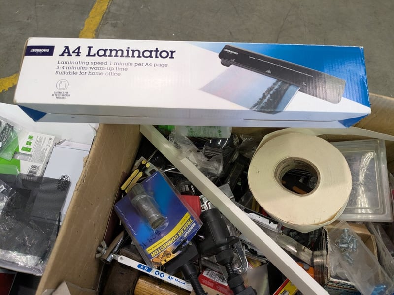 Assorted Electronic Fixings, Office Accessories, Hand Tools, Including: A4 Laminator, Led Strip Lighting, Soldering Iron. VGA Connectors., Computer Tower Fixings, Power Adapters and More