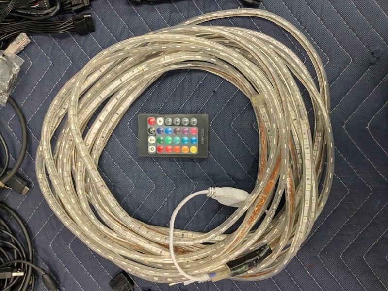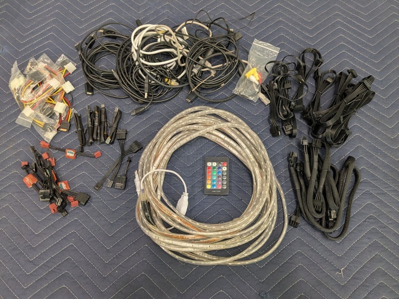 Assorted Computer, Media, Lighting Accessories, Including LED Strip Light with Remote, Entertainment Media Cables & Computer Tower Electrical Connective Cables, Refer to ImagesNote: UntestedSold as Lot