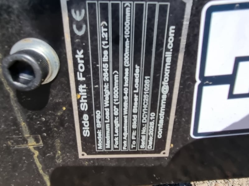 FACTORY DIRECT** 2025 Unused GIYI skid steer Side shift forkFork length: 1500mmDimensions: 1160*1650*810mmMaximum weighing: 1.2TFork adjustment width: 200-1000mmWorking pressure: 10-22MPAModel: GY-SF60S/N: DCYHC2510261For more information Contact King Cheung on 0477987576 or [email protected]Note: OEM images and VIDEOS shown are for illustration purposes only, and used as a guide only, inspections highly recommended.