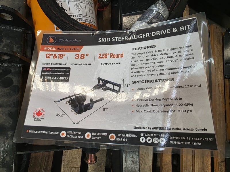 FACTORY DIRECT ** Unused 2025 WOLVERINE, Auger Drive & Bit, ADB-13-1218RComes with auger dimensions: 12 inch and 18 inchEffective working depth: 35 inchHydraulic Flow Required: 15-20 gpmMax. Cont. Operating PSI: 3000 psiOutput Shaft: 2.56" RoundMeasurement Approx: 2080*1030*580Weight Approx: 168kgContact: King Cheung - 0477 987 576 or [email protected]Please note: minor scuffs and marks may be evidentNote: OEM images and VIDEOS shown are for illustration purposes only, and used as a guide only, inspections highly recommended.