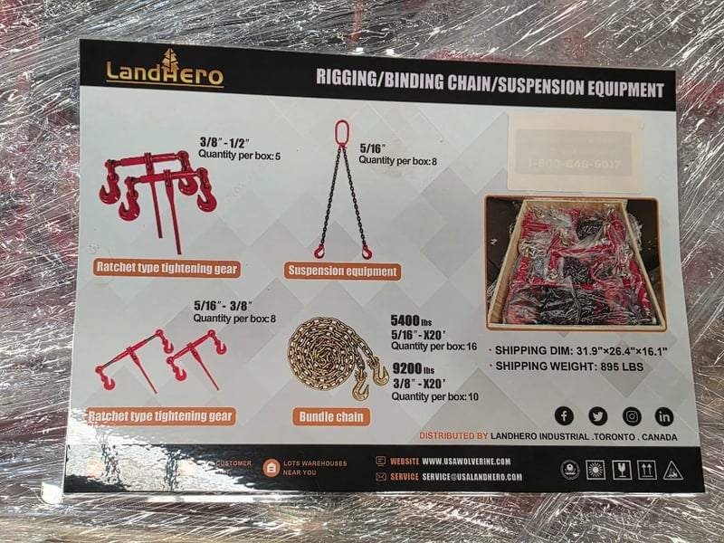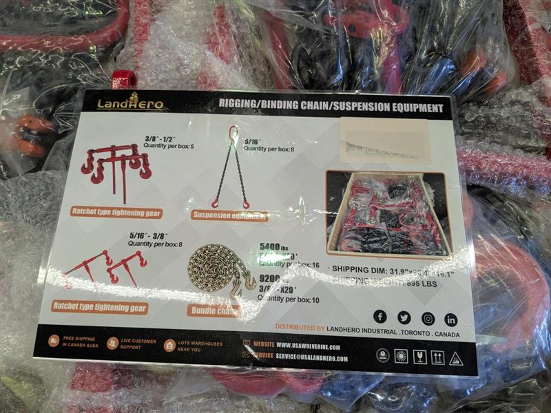 FACTORY DIRECT ** Unused Landhero Rigging/Binding Chain/Suspension EquipmentContact: King Cheung - 0477 987 576 or [email protected]Please note: minor scuffs and marks may be evidentNote: OEM images and VIDEOS shown are for illustration purposes only, and used as a guide only, inspections highly recommended.