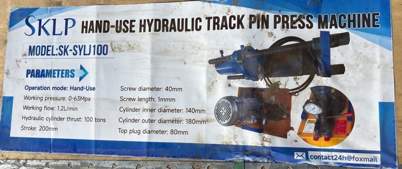 FACTORY DIRECT ** Unused 2025 SKLP SK-SYLJ100, HAND-USE HYDRAULIC TRACK PIN PRESS MACHINEOperation mode: Hand-UseScrew diameter: 40mmWorking pressure: 0-63MpaScrew length: 1mmmWorking flow: 1.2L/minCylinder inner diameter: 140mmHydraulic cylinder thrust: 100 tonsCylinder outer diameter: 180mmStroke: 200mmTop plug diameter: 80mmS/N: YLJ100251034Contact: King Cheung - 0477 987 576 or [email protected] Note: OEM images and VIDEOS shown are for illustration purposes only, and used as a guide only, inspections highly recommended