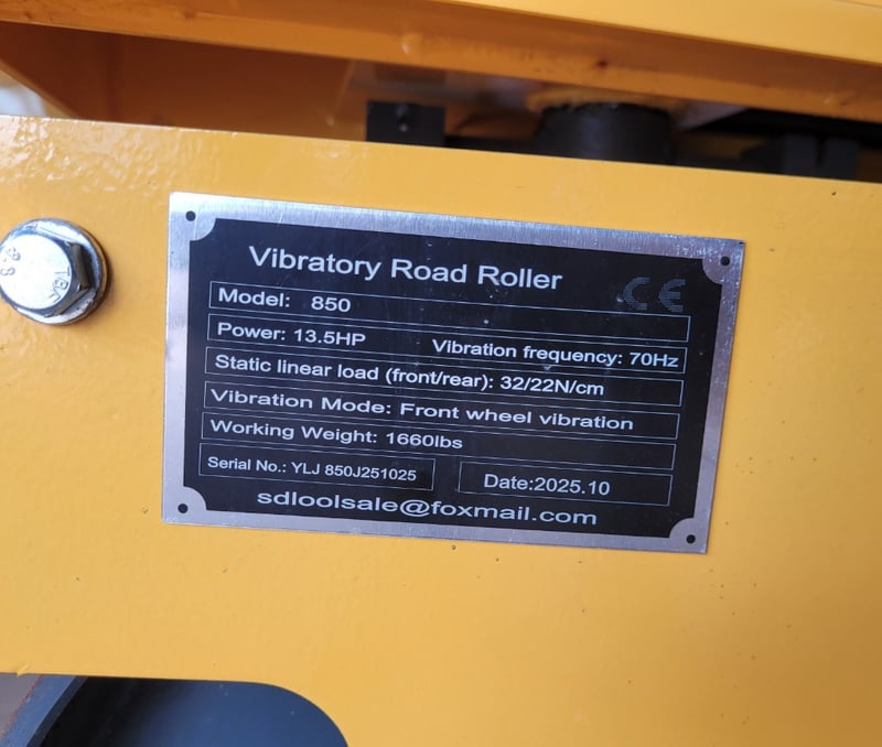 FACTORY DIRECT** 2025 Unused MMS MS ride on road roller Year: 2025 Make: MMS Model: MS 850 Body: ride on road roller Electric start front wheel size 530mm*700mm Exciting force 30KN Vibration Frequency: 75Hz Power: 13HP Front Wheel Vibration Serial : YLJ850J251025 For more information Contact King Cheung on 0477987576 or [email protected] Note: OEM images and VIDEOS shown are for illustration purposes only, and used as a guide only, inspections highly recommended.